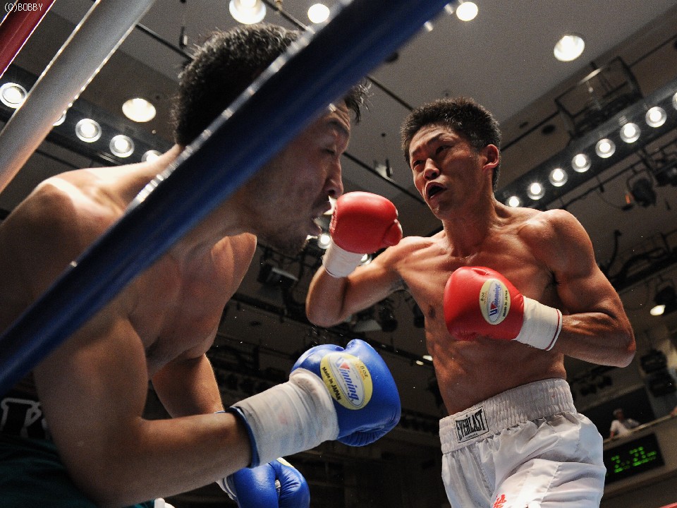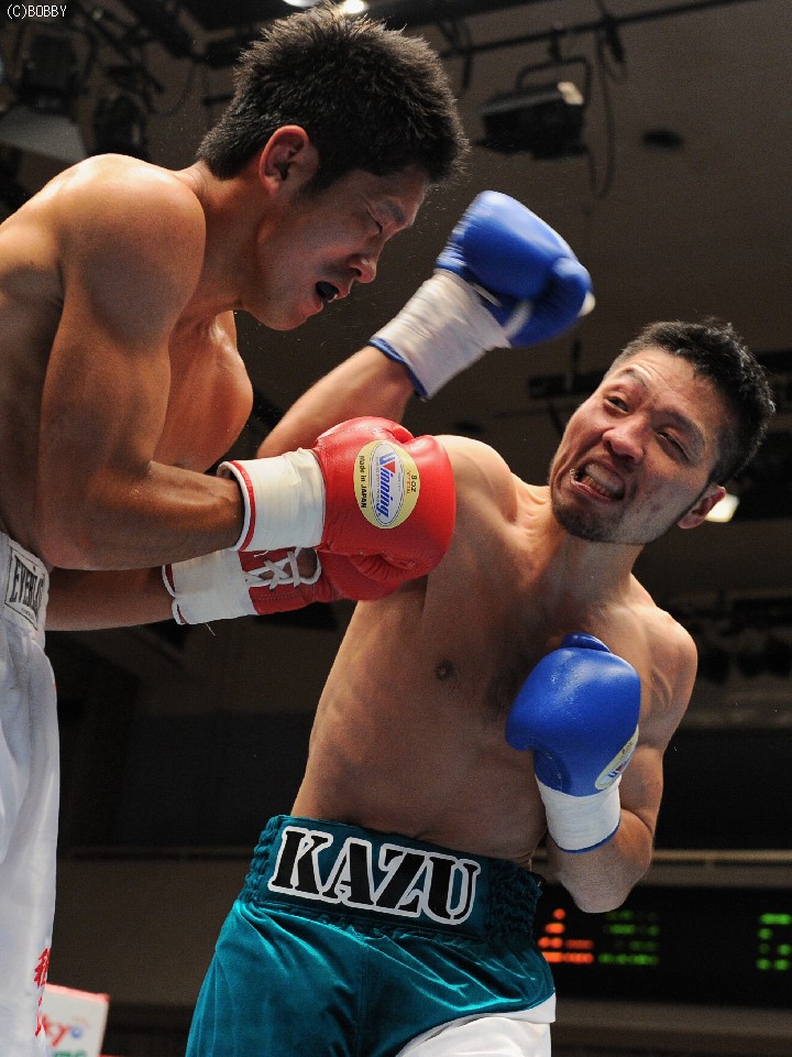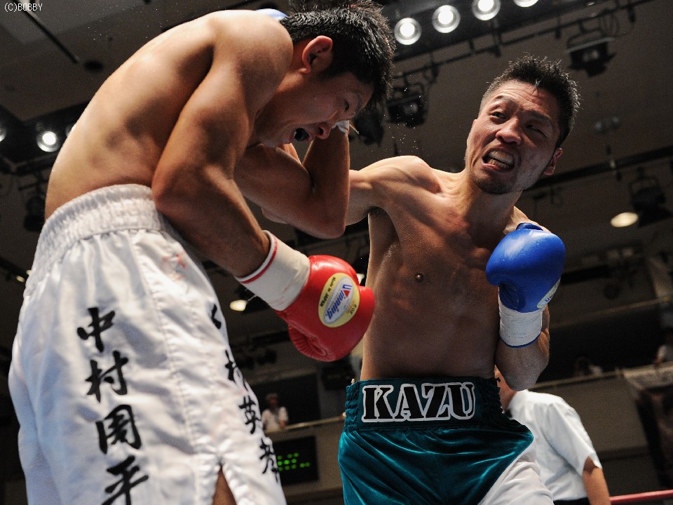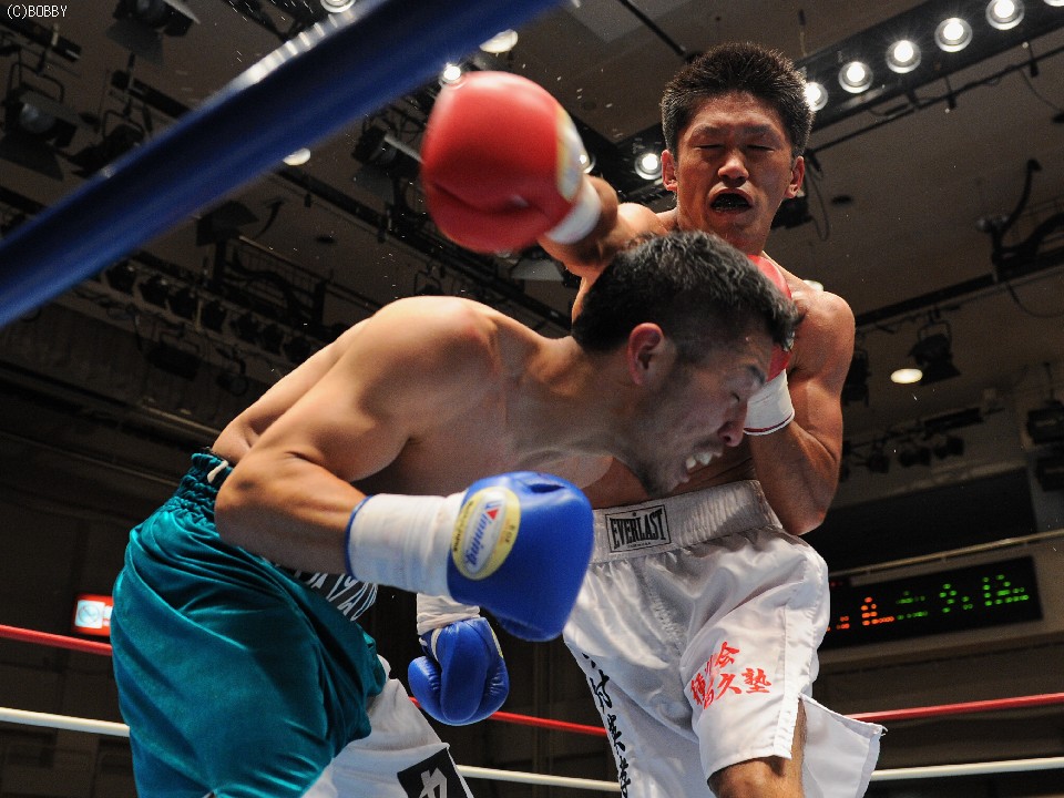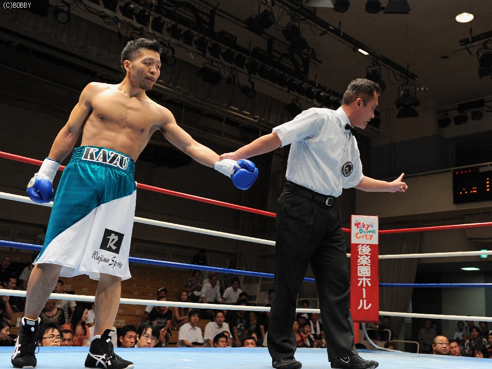 試合:開始早々、高桑の放ったストレートが橋爪にヒット。ダウンを奪うものの、勢い余った高桑がダウン後の加撃で減点。中盤、橋爪はワンツー・フックで詰め寄るが高桑の出すジャブの弾幕が壁となる。終盤、ロープ際での乱戦、共に渾身の力でボディ、フックの打ち合いとなる。試合は判定となったが、的確なジャブを見せた高桑がポイントアウト。