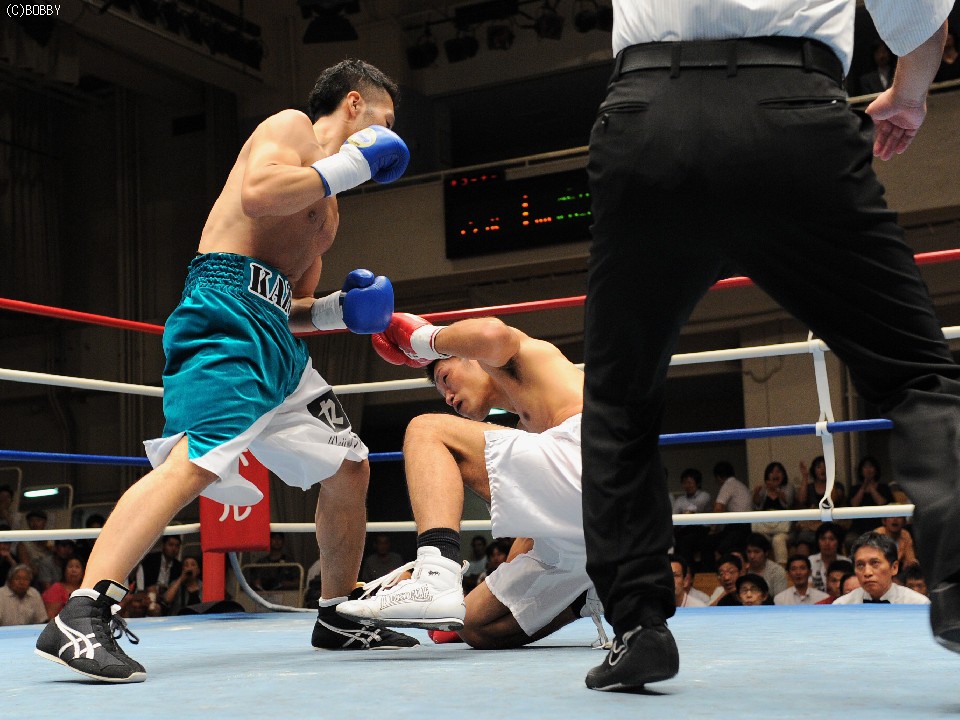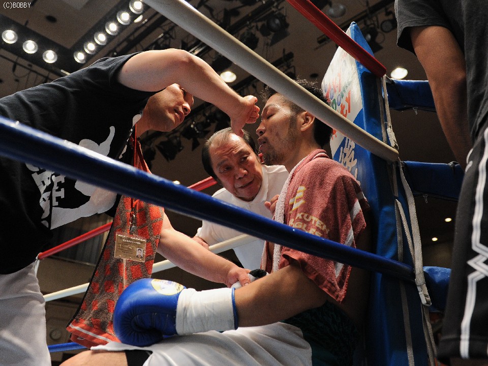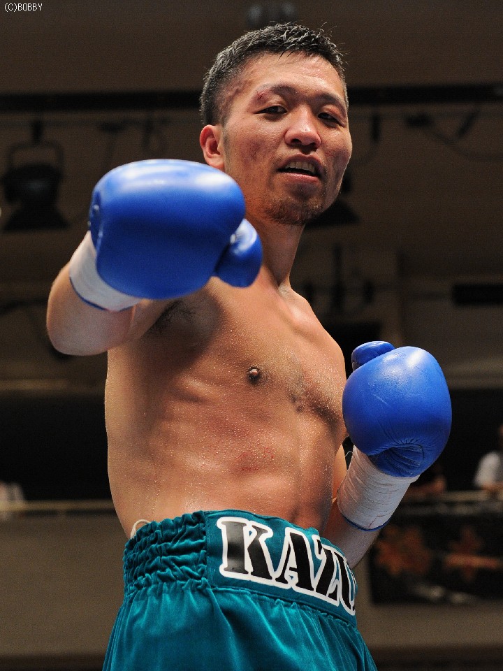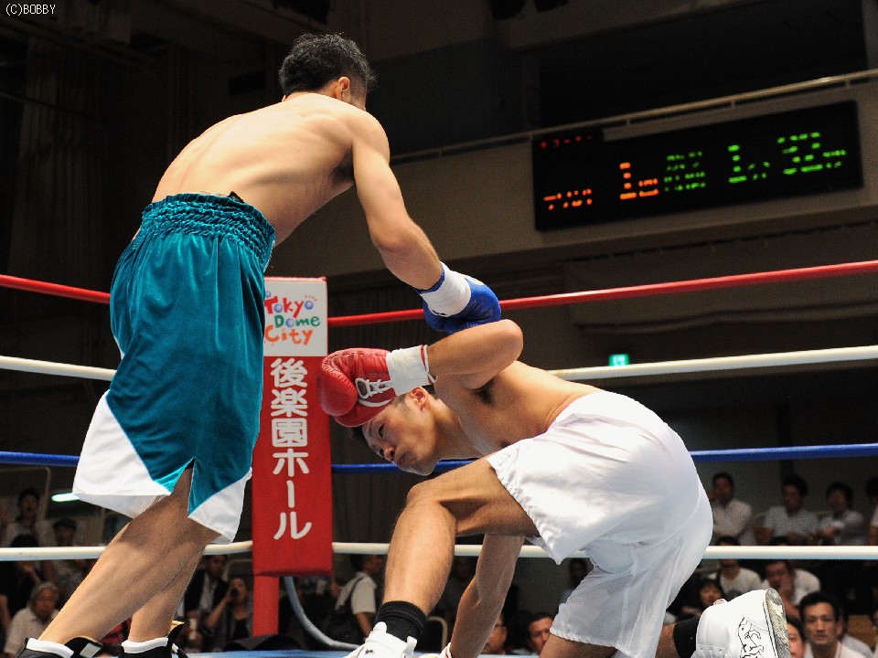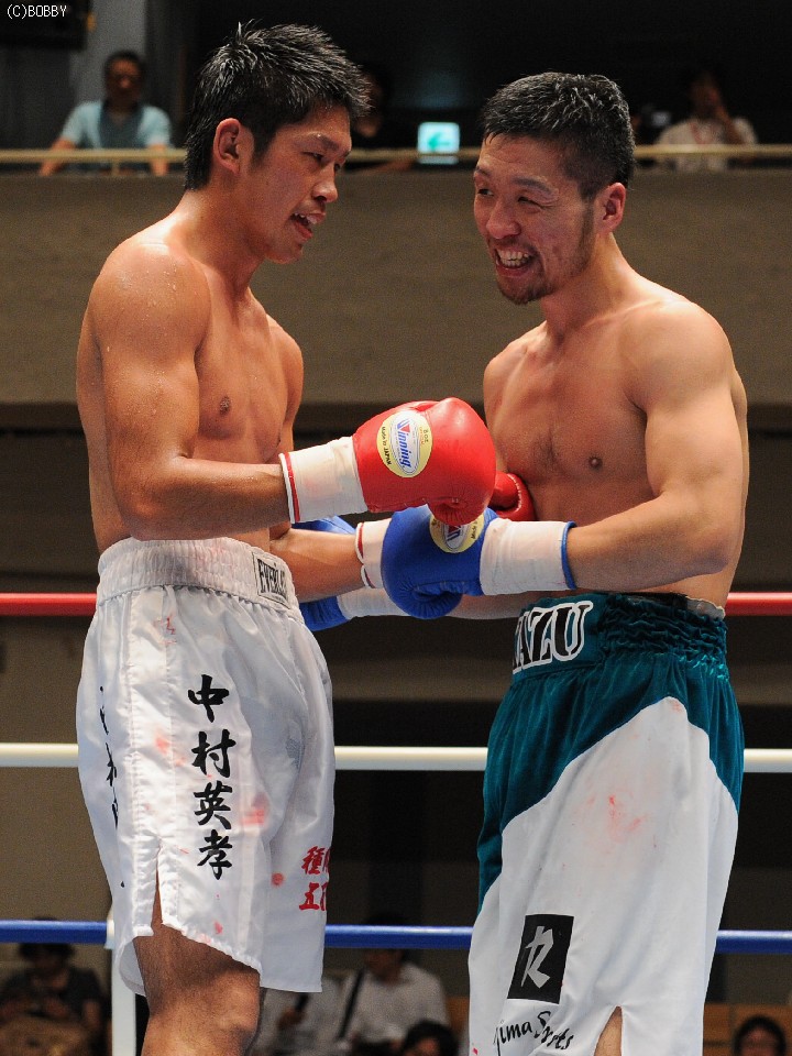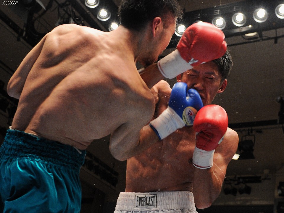 試合:開始早々、高桑の放ったストレートが橋爪にヒット。ダウンを奪うものの、勢い余った高桑がダウン後の加撃で減点。中盤、橋爪はワンツー・フックで詰め寄るが高桑の出すジャブの弾幕が壁となる。終盤、ロープ際での乱戦、共に渾身の力でボディ、フックの打ち合いとなる。試合は判定となったが、的確なジャブを見せた高桑がポイントアウト。