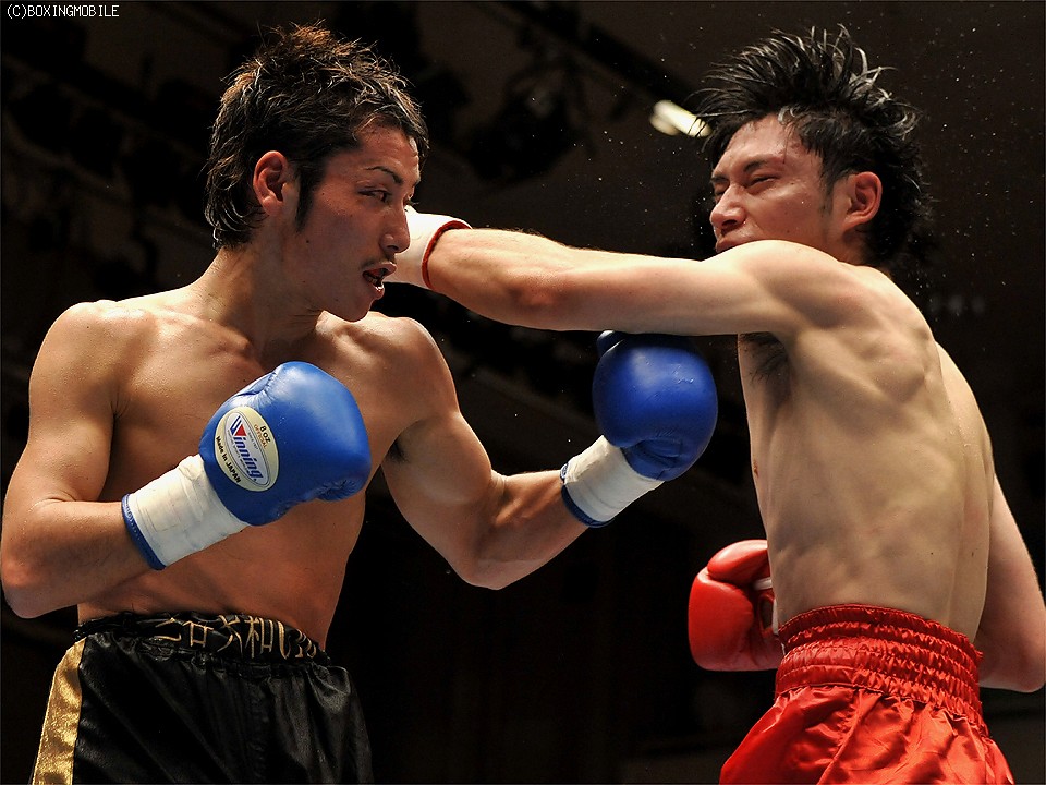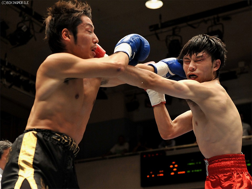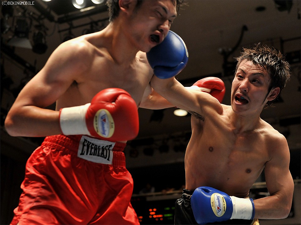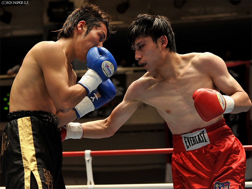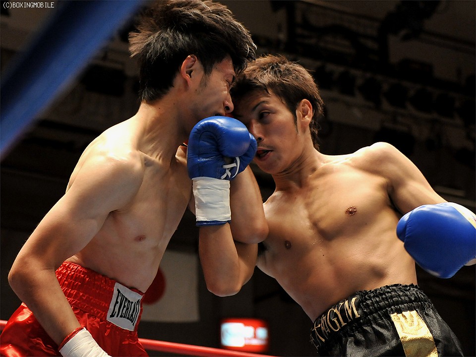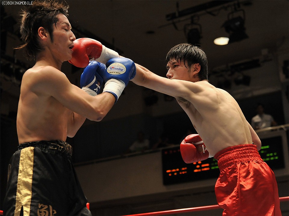 試合:開始早々、両者ワンツー・フックの激しい打ち合い。決定打はないものの有効打の数で篠塚がポイントアウト。