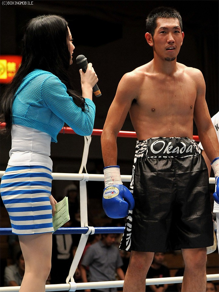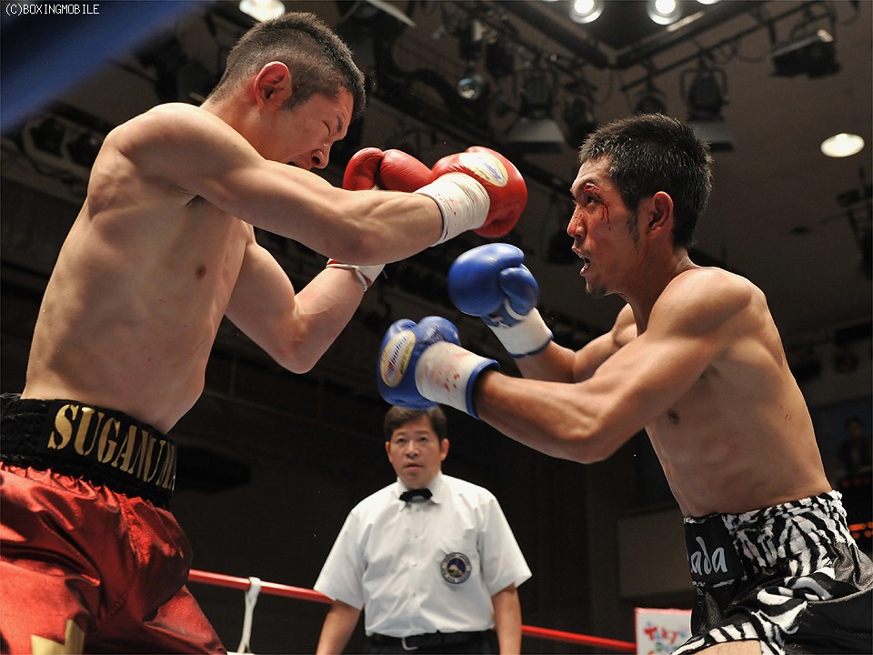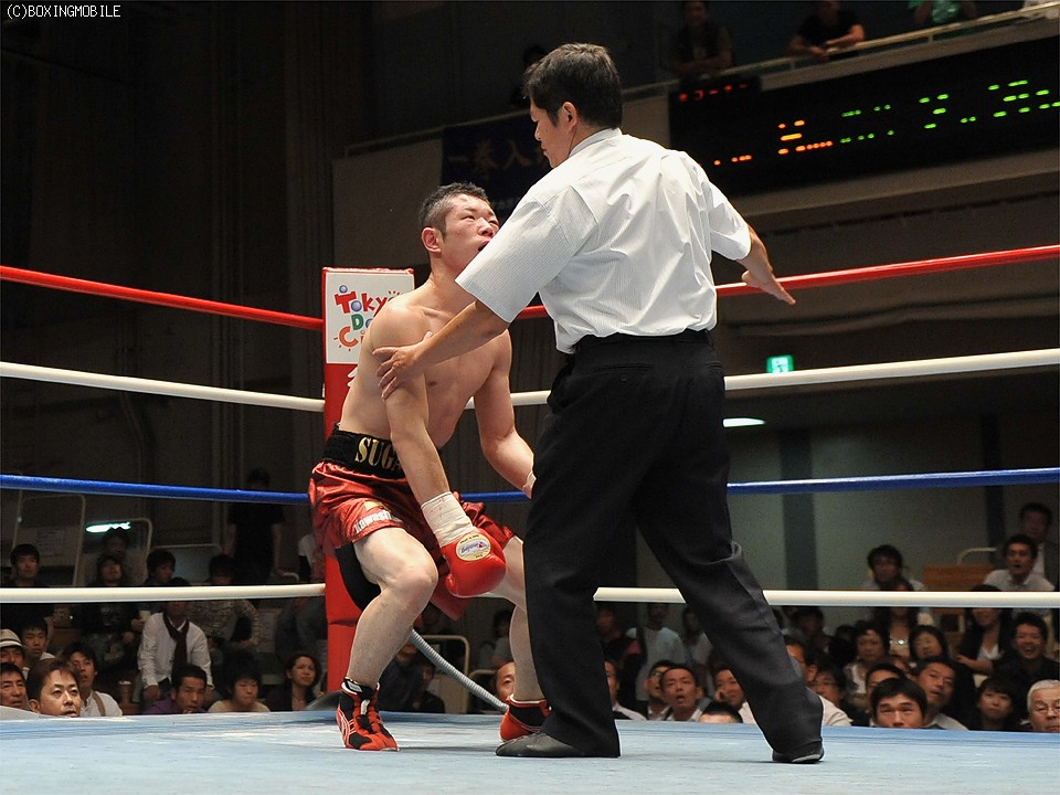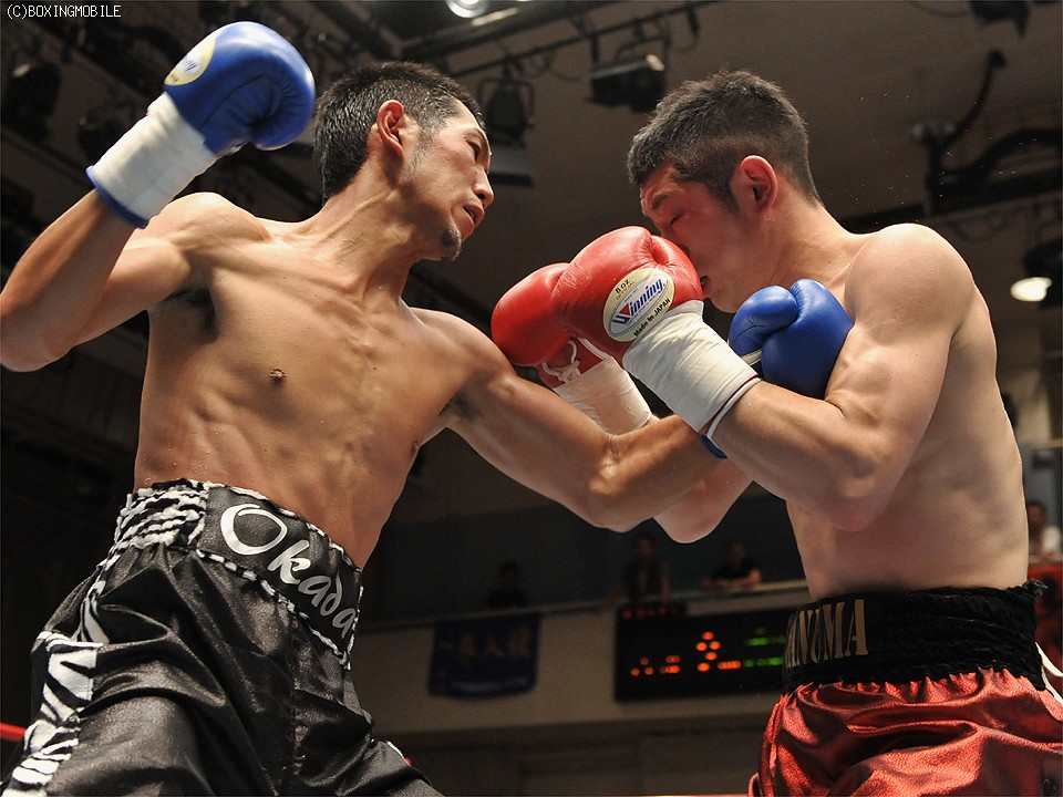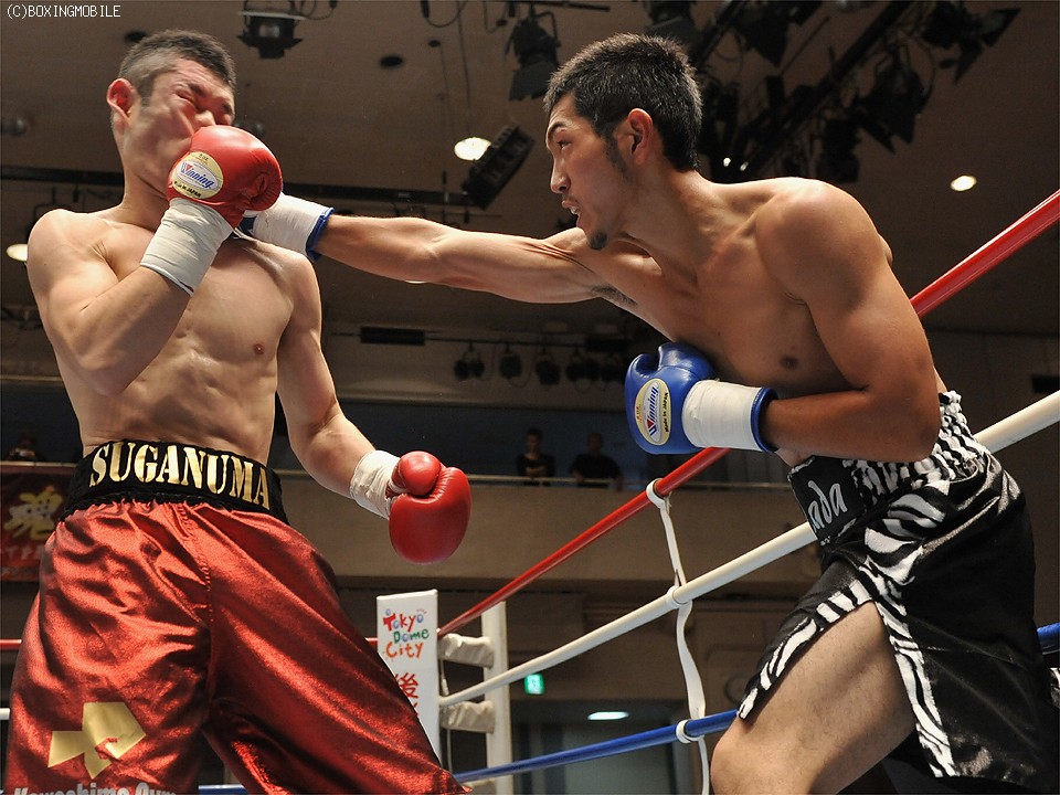 試合:岡田の左フックが炸裂!!菅沼はワンツー・左フックで前に出るが、岡田は巧みなブロックで連打を許さない。すると2R、強引に詰める菅沼に対し、岡田はバックステップから右ストレートでダウンを奪う。そして3R、岡田は冷静にジャブで距離を測り、狙い済ました左フック一閃、菅沼はキャンバスに崩れ落ちた。岡田の勝利により、決勝戦は福地健人との同門対決となった!!