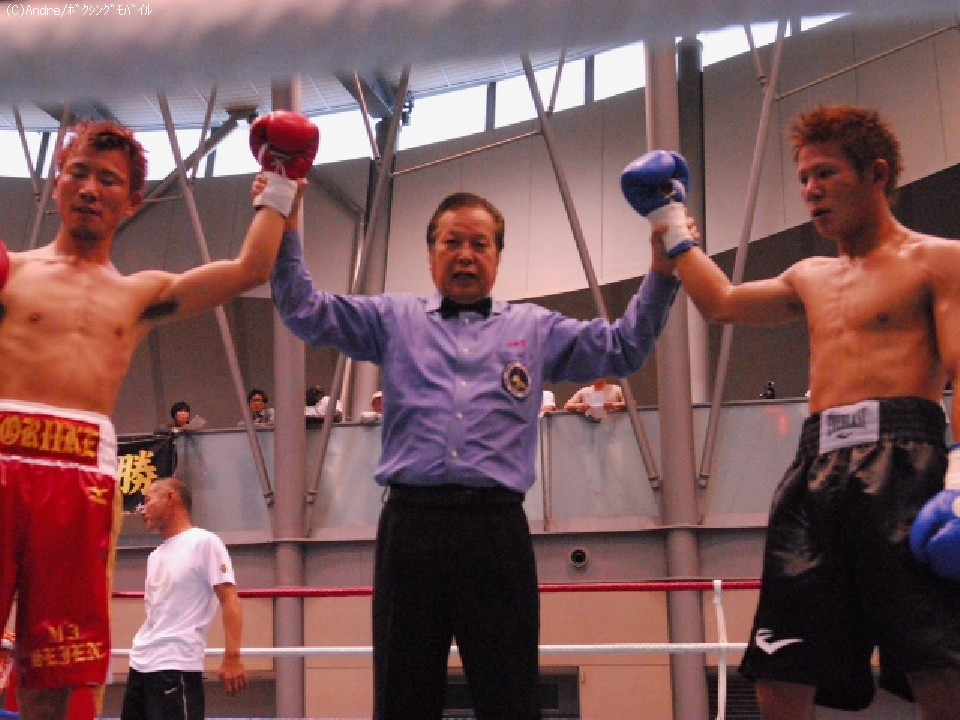 試合:序盤、両者距離を保つと全く手が出ず踏み込めず静かな展開。中盤、奥間はガードを固めステップインして右ストレートを狙い、堀池は左ジャブから右フックを当てていく。終盤、堀池が左ジャブを的確にあてポイントを稼ぐ。奥間も鋭く踏み込み左アッパーをあてるが両者ともに有効打はなく判定ドロー。堀池が勝者扱い。