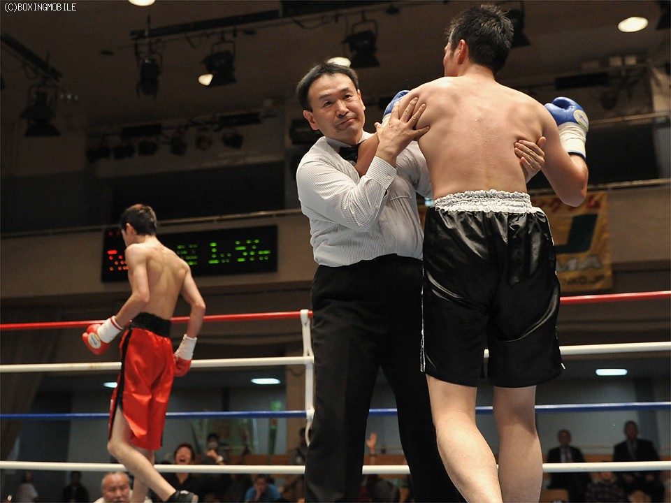 試合:長身を活かした木下がロングレンジからの左フック・右ストレートでペースを握る。濱邊は体を振って的を絞らせず、ボディで懐に入ってはワンツーで喰らいつく。しかし、距離優位の木下が打ち降ろしの右、アッパーで攻勢を続け、最後は右ストレートで濱邊の顔を跳ね上げ、レフェリーストップを呼び込んだ。