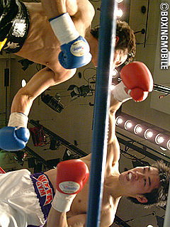 試合:長身の片桐がガードを固め右を打ち抜く。斉藤は鼻血出しながらも応戦し、3Rには左フックを再三当て優位に。しかしゴング間際、片桐の右でガクッとなりあわやダウン。4Rも片桐の右でダウン寸前のシーンなど、片桐優勢。片桐「決勝は同門対決。同じ学校、同じ野球部の先輩・後輩ですが、頑張ります」