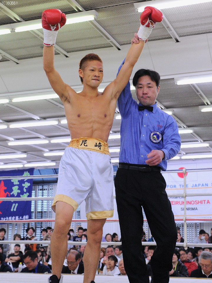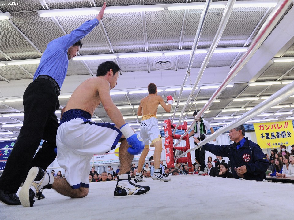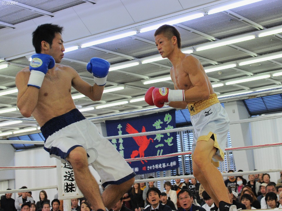 試合:矢田の一方的な左右のストレートが決まり、橋本ダウン、立ち上がるも、更に猛攻をしかける矢田の右ストレートがヒットし橋本2度目のダウン、立ち上がるも足がふらつき10カウント。矢田のKO勝利!