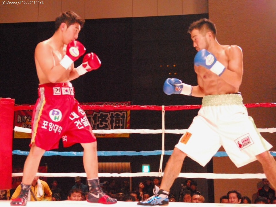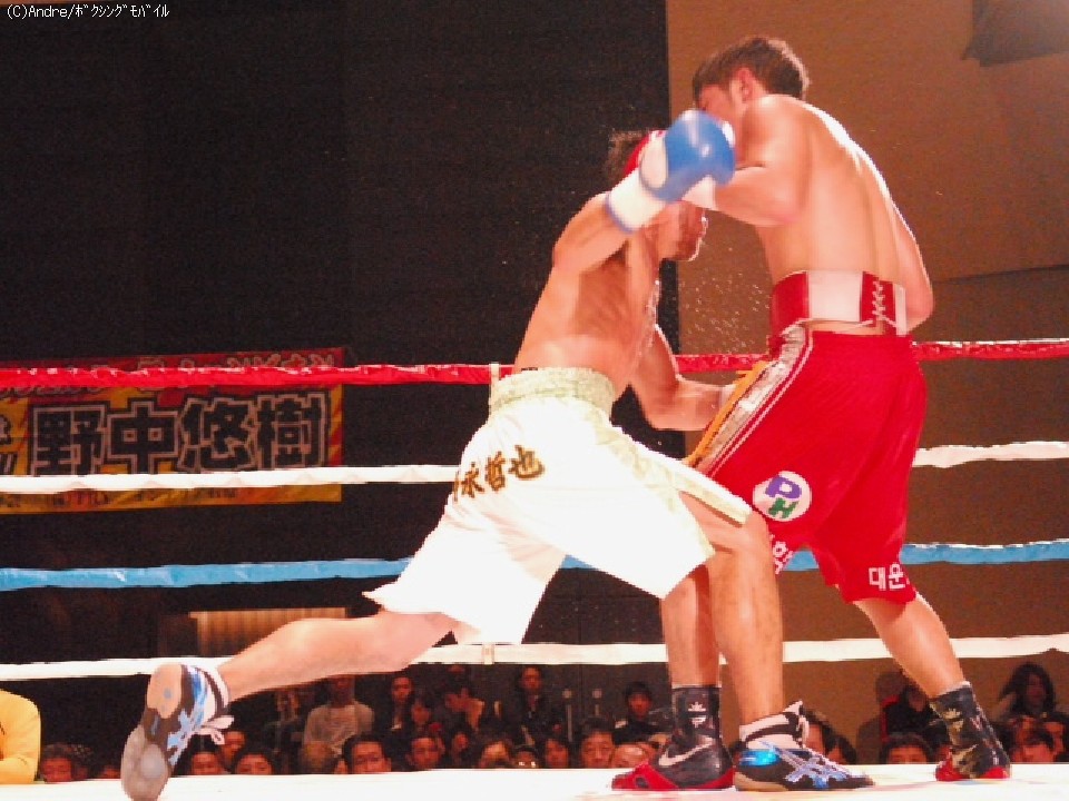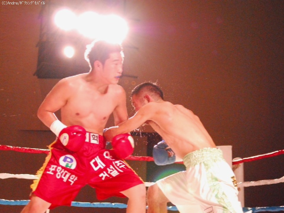 試合:両者ジャブの差し合う。権は左ジャブをあてながら飛び込み左右のフックを狙い、西永は右ジャブから相手の飛び込み際左アッパーをあてていく。4R、権の離れ際の左フックが決まり、西永は膝を揺らすがゴングに救われる。5R、権は更に猛攻をしかけ、左フックで西永ダウンを奪われるが立ち上がると、またもゴングに救われる。9R、権のワンツーが二度決まり、目の飛んだ西永を見たレフリーが試合をストップ、権のTKO勝利!