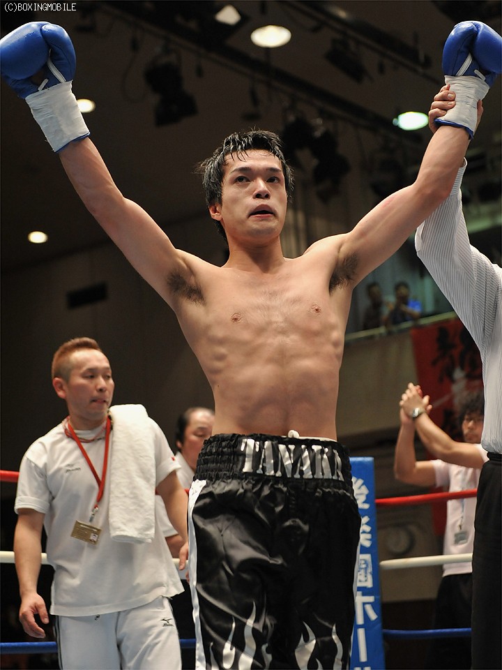 試合:ジャブ・ワンツーで距離を詰める橘に対し、田中はジャブ・フックで距離を取る。最終Rまで打ち合いの展開が続いたが、的確な有効打を奪った田中が3-0で判定勝利。