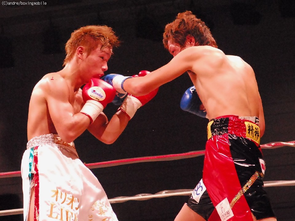 試合:川端鋭く前に出て左右のボディから顔面に右ストレートがあたる。一方、サウスポーの石橋も川端が出てくるところを左ショートストレートが決まる。中盤、接近戦となり、川端は左ボディフックから顔面にアッパーを打ち、石橋は、右ジャブから左ストレートが決まる。終盤、距離を作った川端が右アッパーの連打で石橋を追い詰めるが、石橋もスイッチし左右のフックを当て返す。判定で川端の勝利!