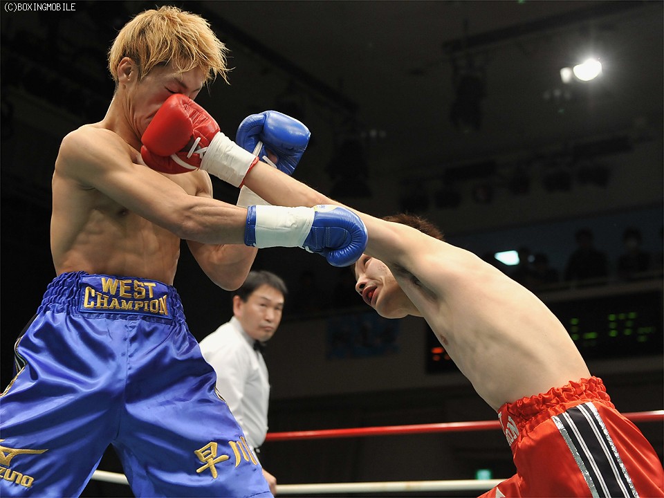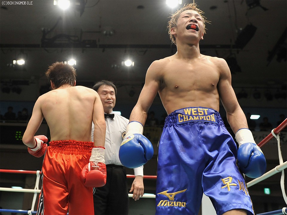 試合:先に距離を支配した横山は、左ジャブから右ストレートを当てる。一方のサウスポー早川は、鋭い飛び込みで左ストレートを打ち込み応戦。最終ラウンドまで激しく打ち合った両者だったが、終始有効打を集めた横山の僅差判定勝利。横山は敢闘賞を獲得。
