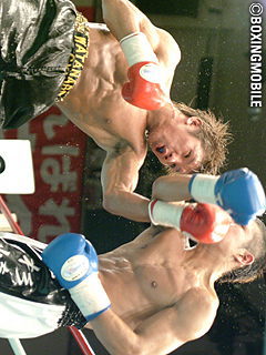 試合:序盤、杉崎がジャブでリズムを作り、ワンツー・左フックを川村にクリーンヒットさせ、ポイントを奪う。川村は一発を狙ってかパンチが大きい。中盤、杉崎のワンツーに川村も右ストレート・左フックを合わせ、相打ちを狙い打撃戦に。杉崎はジャブで距離を取りたいが、乱打戦に巻き込まれ、川村が手数で上回りクリーンヒットを奪い、ポイントを強引に奪い返す。終盤、杉崎も打ち合いに応じ、打撃戦を展開。7R、川村がローブローで減点1を宣せられるも、最終Rも、手数・クリーンヒットで杉崎を上回る。試合は判定に持ち込まれたが、前半杉崎に奪われたポイントを中盤から終盤にかけ川村が奪い返し、3-0の判定で勝利しランキングを守った。