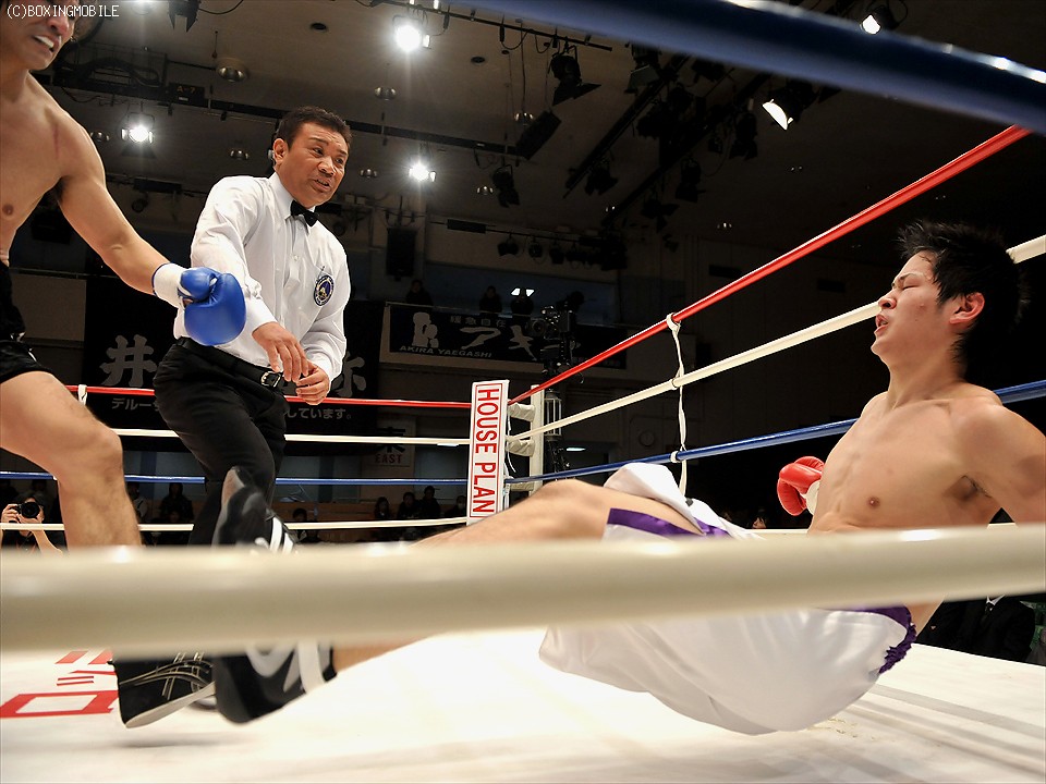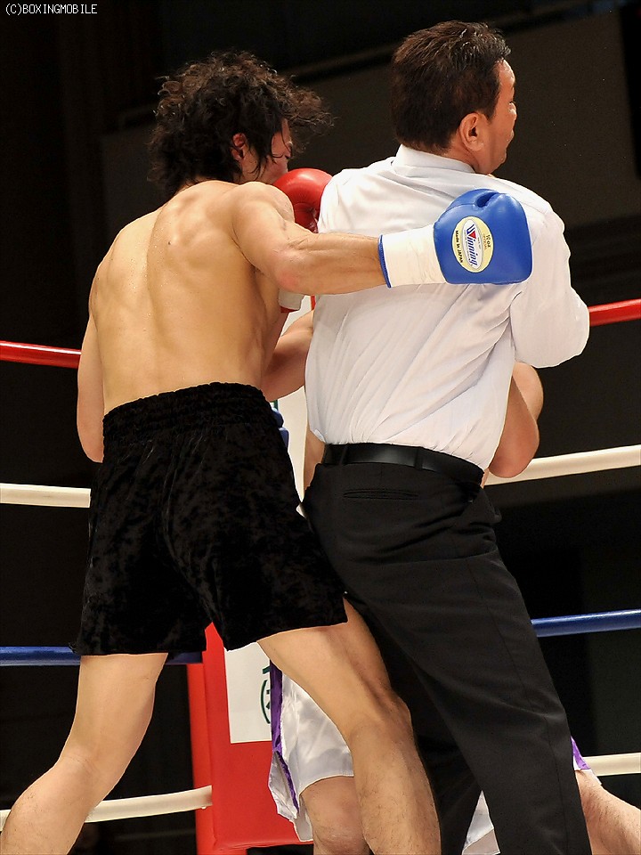 試合:サウスポー対決。開始より積極的に前に出る会津に対し、尾島はボディからのコンビネーションを狙う。2R、尾崎が放つコンビネーションの左ストレートが炸裂、ダウンを奪う。立ち上がる会津だったが、尾崎の連打を浴びるとレフェリーが試合を止めた。