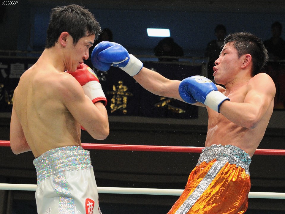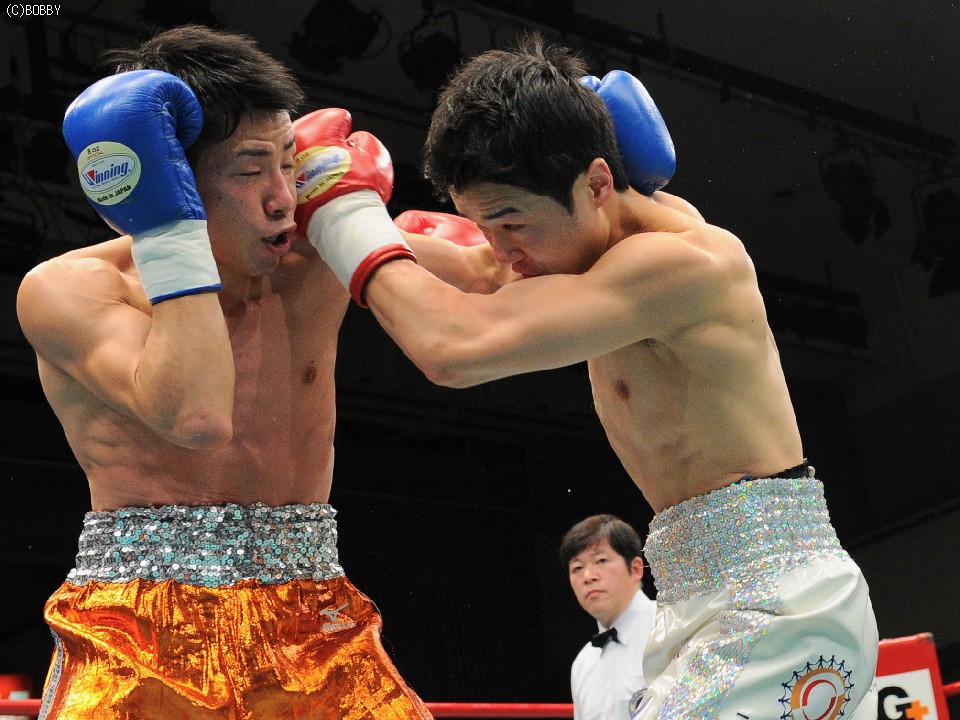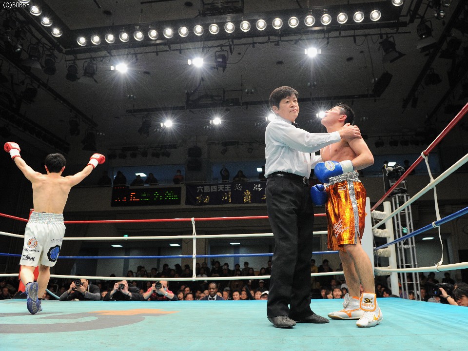 試合:木村の右ストレートが貫く!!ジャブの刺し合いでスタートするも、木村のコンパクトな左フック・右ストレートが土生を捕らえる。ペースを握った木村は右ストレートを上下に打ち分け、左フックを土生の顔面に浴びせる。すると5R、木村の左ボディがメリ込み土生の膝が落ち、追撃の右ストレートを顔面に突き刺すと堪らずレフリーが割って入った。