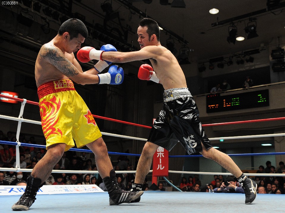 試合:ガードを上げ距離を詰めるナタポンに対し、サウスポー新藤は、右フックでガード弾き右ストレートを狙う。ラウンド終了間際、新藤のワンツー・フックが決まりダウンを奪う。立ち上がるナタポンを連打で追い込むも、ラウンド終了のゴング。続く2R、開始直後より新藤の連打がナタポンを捕えると、ナタポンも反撃にでる。しかし、新藤はこれを交わし、体勢を崩したナタポンにストレートを叩き込みダウンを奪う。このダウンに10カウントが数えられ試合終了となった。