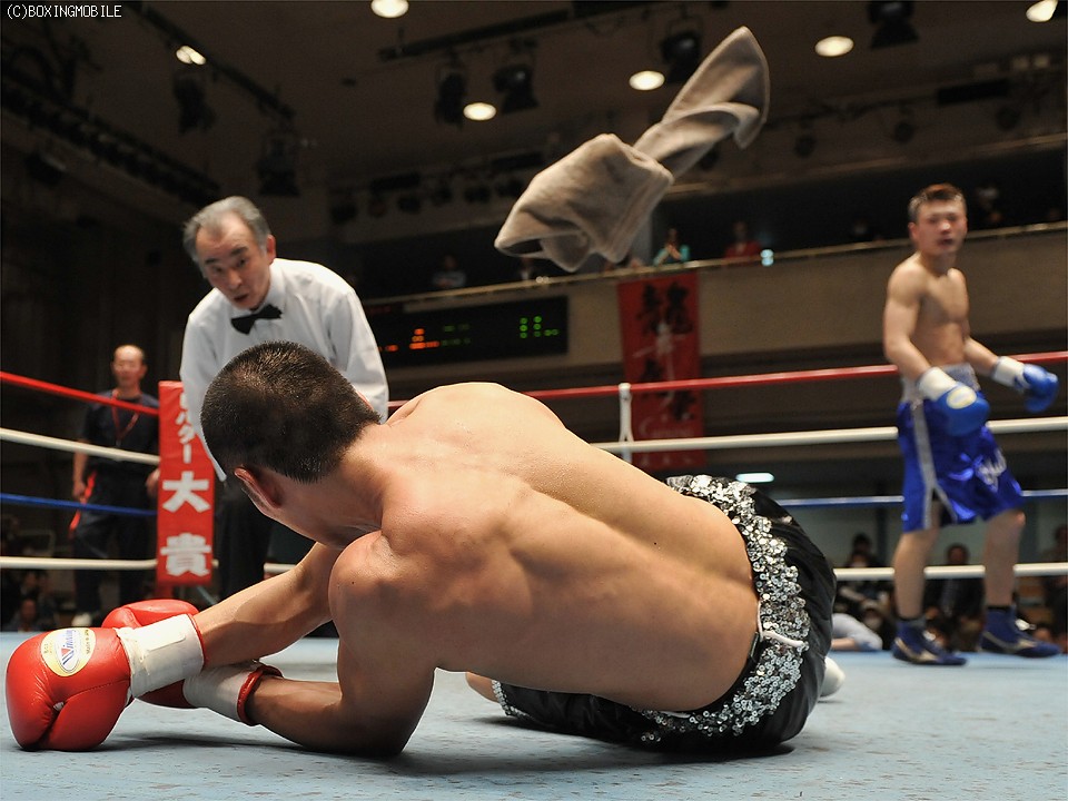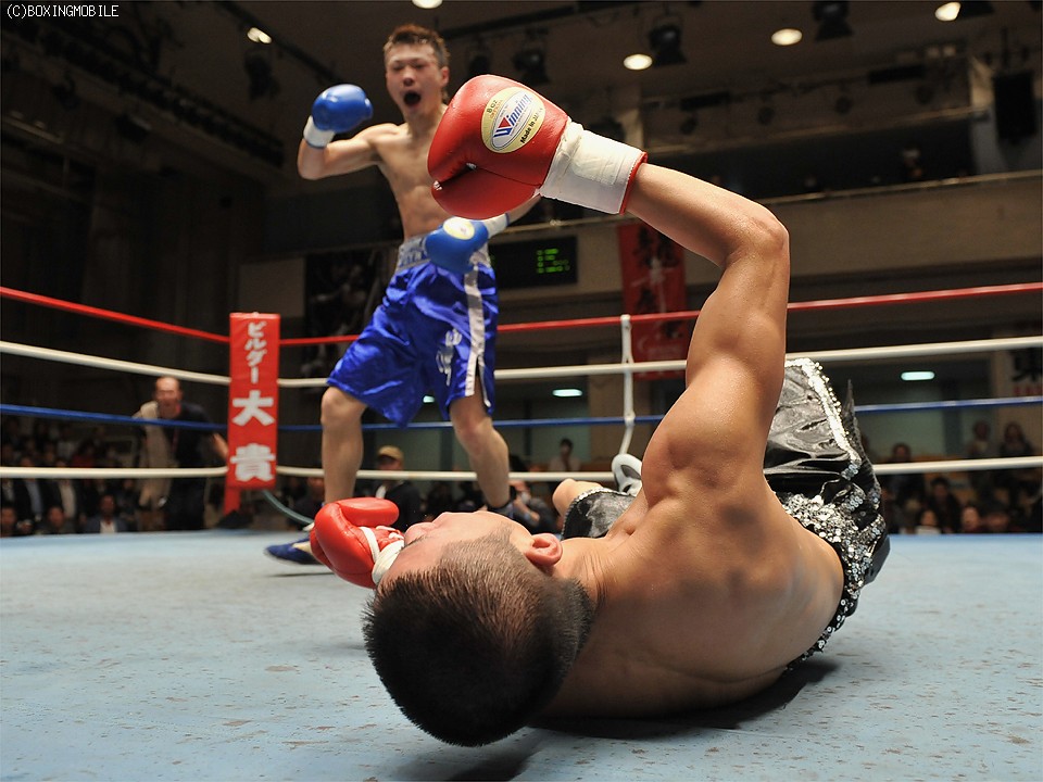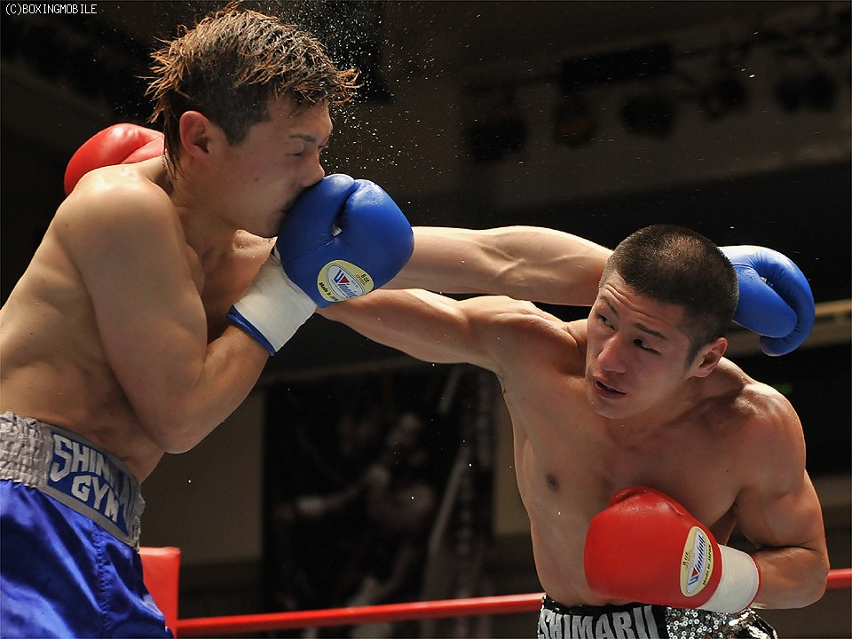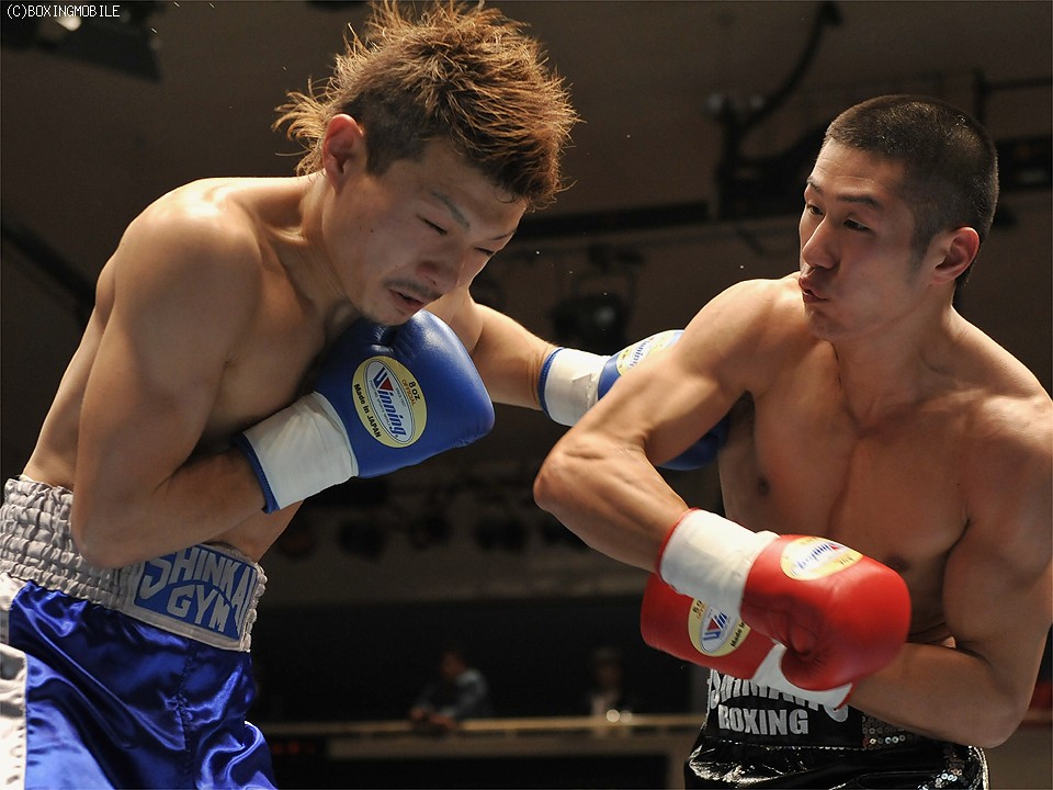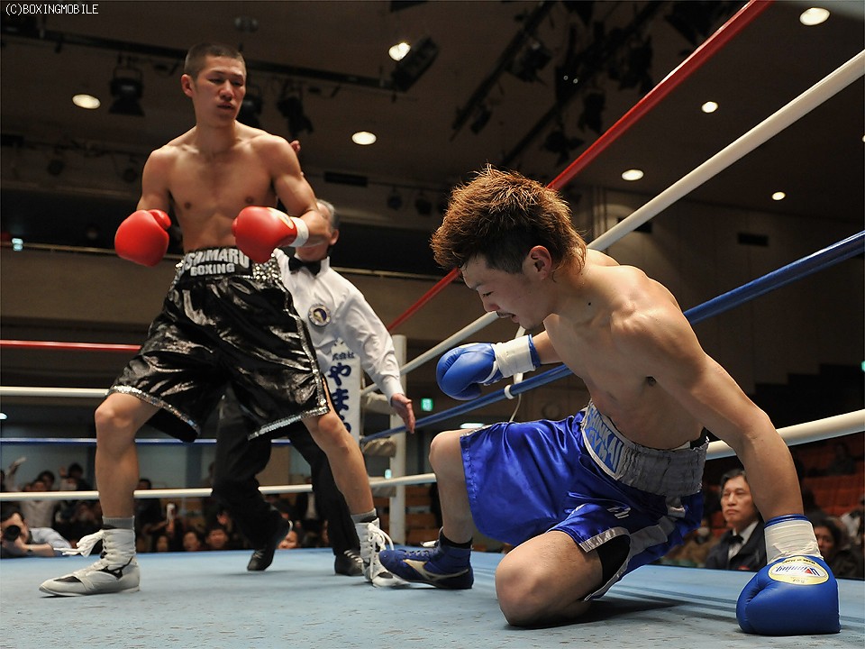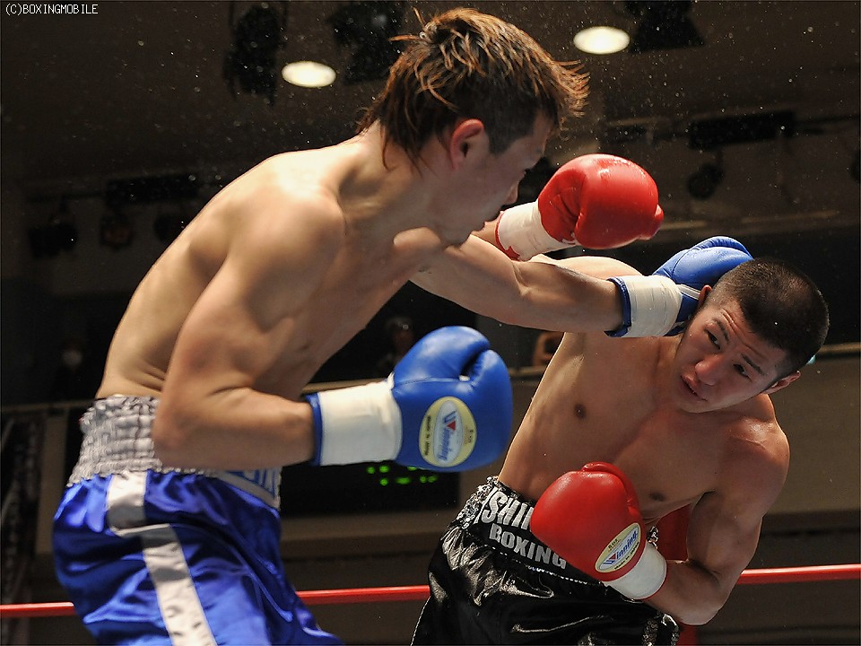 試合:足を使い、上体を振りながら距離を詰める前之園に対し、岩崎はジャブで距離を取り右の強打を狙う。2R、前之園は、ジャブ・ワンツーと的確に有効打を奪うと、ロープ際に追い込んだ岩崎に、左フック・右アッパーを叩き込みダウンを奪う。続く3Rも前之園のが、主導権を握る展開となるが、岩崎は守りを固めてカウンターを狙う。4R、好戦的に有効打を狙う前之園に、岩崎のワンツーが炸裂しダウンを奪う。立ち上がる前之園に連打を浴びせると、岩崎の左フックがアゴを捕え、またもダウン。セコンドから、タオルが投げ込まれ試合終了。 ★
