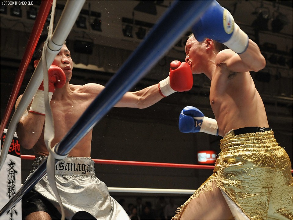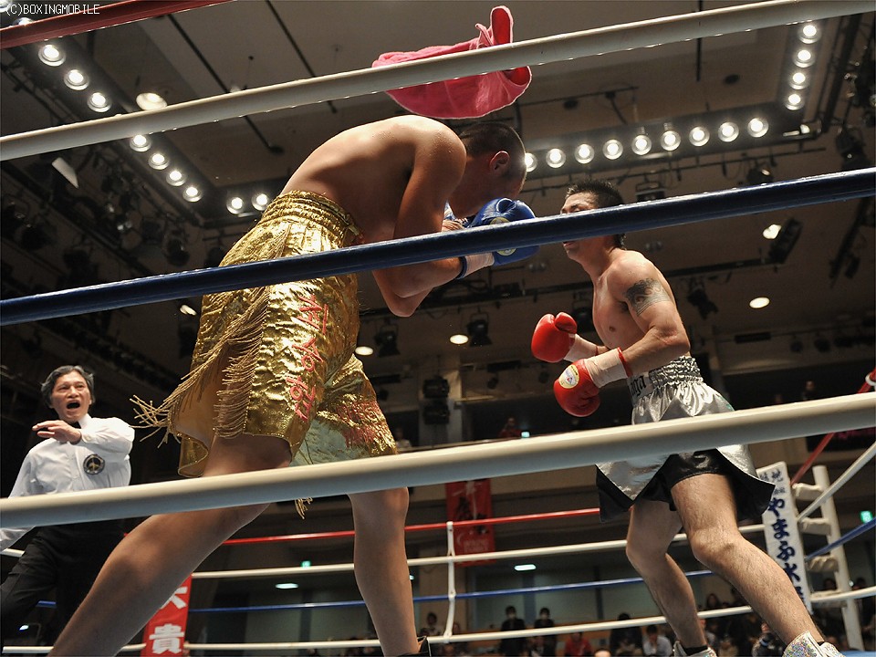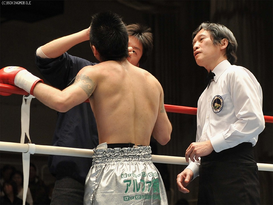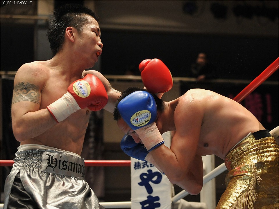 試合:久永のボディ攻撃が冴える!!ジャブの刺し合いでスタートするも、ランカー久永の左フック・左ボディがヒットすると、洞平も右ストレートを返し打撃戦の展開に。中盤、久永は左右ボディ連打で洞平を下げ、左フック・右ストレートでロープに押し込む。すると7R、久永は右ボディフックで洞平の身体を「くの字」にし、一気のワンツー・左ボディ・左フックを浴びせると、堪らずタオルが投げ込まれた。