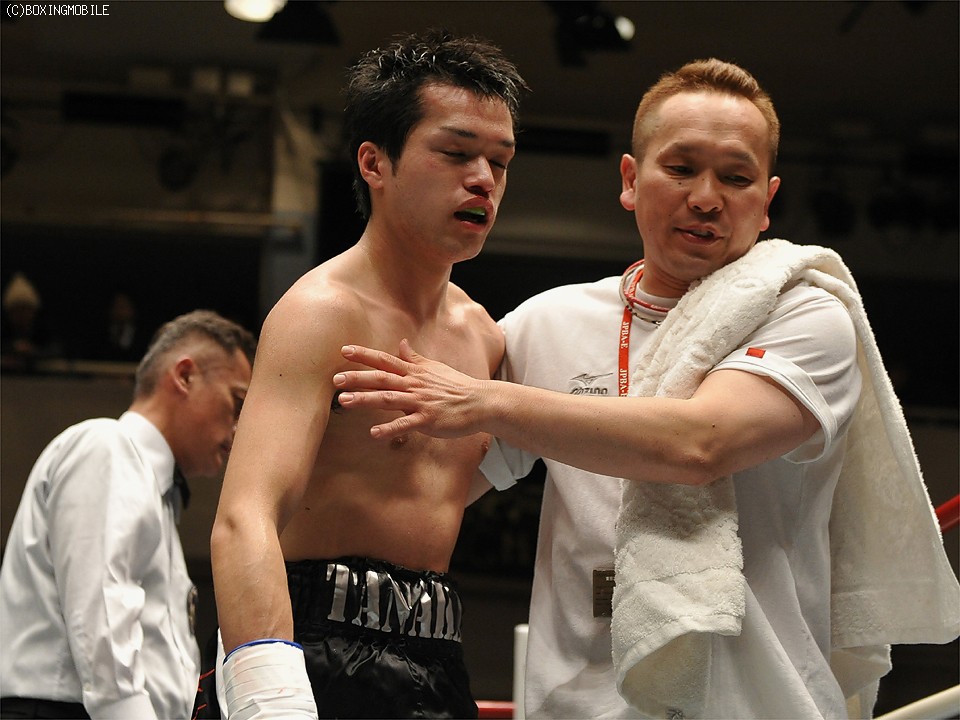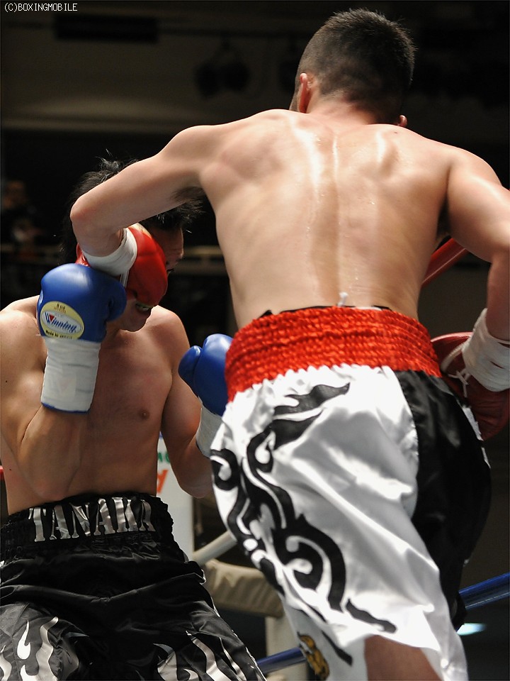 試合:佐藤が初のKO勝利!!田中は左フック・右ストレートで仕掛けるが、佐藤はスイッチを繰り返しストレートで応戦する。すると2R、サウスポースタイルの佐藤は左ストレートを浴びせ、田中からダウンを奪う。そして5R、田中はプレスを掛け前に出るが、佐藤の左フックがアゴを打ち抜く。この一撃で田中はキャンバスに崩れ落ち、即座にレフリーは試合を止めた。