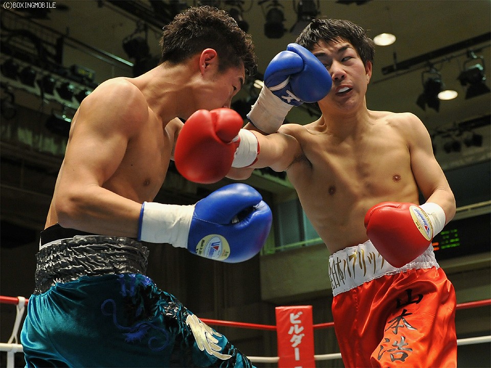 試合:山本の右ストレートが唸る!!サウスポーのドラゴンがワンツーで切り込み、左ストレートで山本の顔面を捕らえる。しかし4R、山本は圧力を強め、左フックでドラゴンをコーナーに押し込む。ここで山本は一気のワンツー・左フック・右ストレートを浴びせると、ドラゴンはキャンバスに崩れ落ちた。
