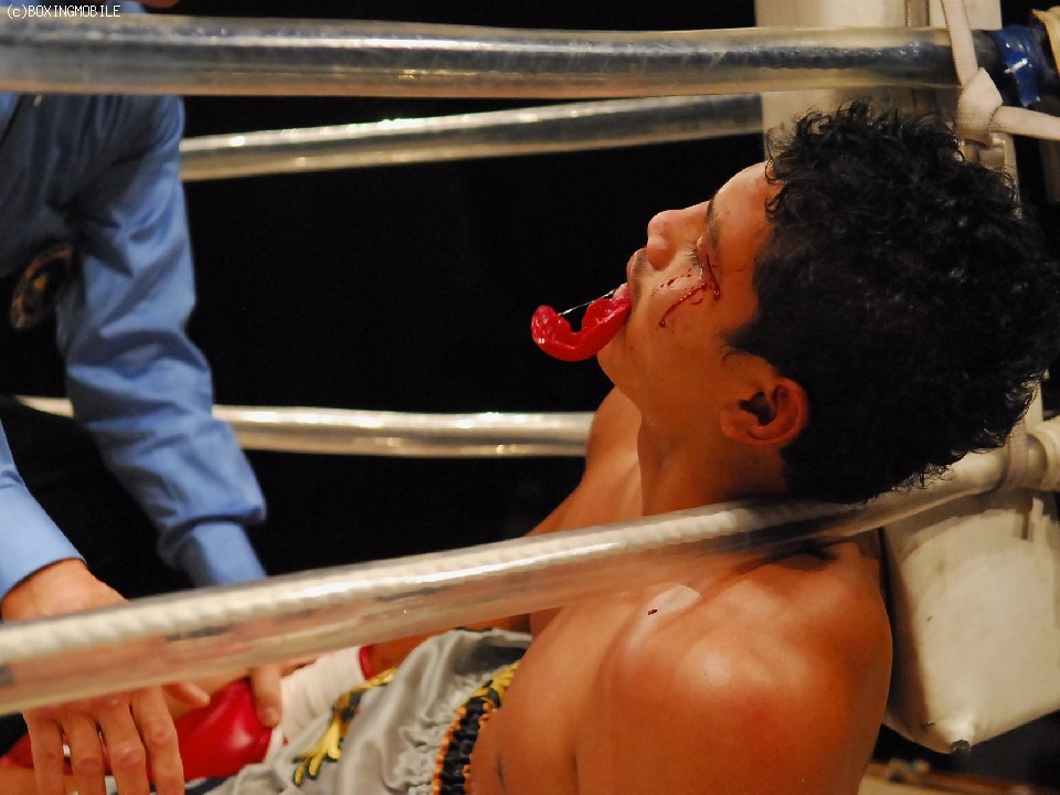 試合:ペットスリヤーはガードを固め接近すると左右のフックをあてていく、対して大石は冷静にさばき、ワンツーをあてていく。2R、大石がプレスをかけコーナーに詰め右ストレート一閃プットスリヤーは左目上をカットしダウン、そのまま大石のTKO勝利!