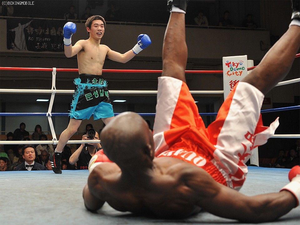 試合:キムの左ストレートが貫く!!サウスポーのキムは左ストレート・右フックをピーターにヒットさせ先手を握る。するとキムの左ストレート一閃、顔面を打ち抜かれたピーターはダウンを喫する。立ち上がるピーターは足元が定まらず無念のレフェリーストップ、キムがTKO勝利を奪った。