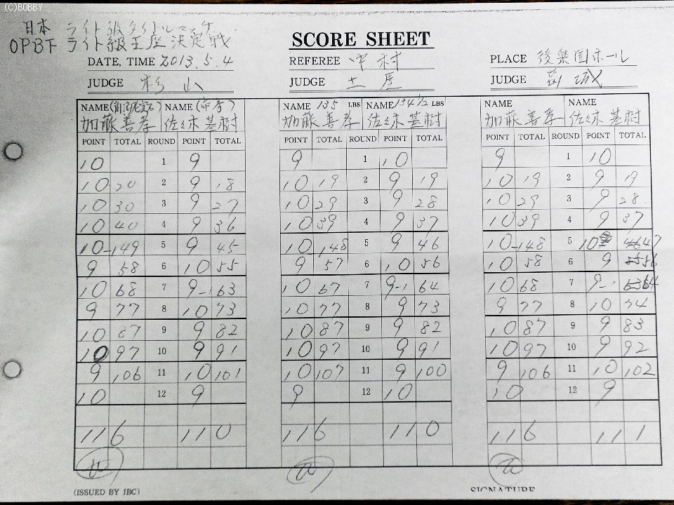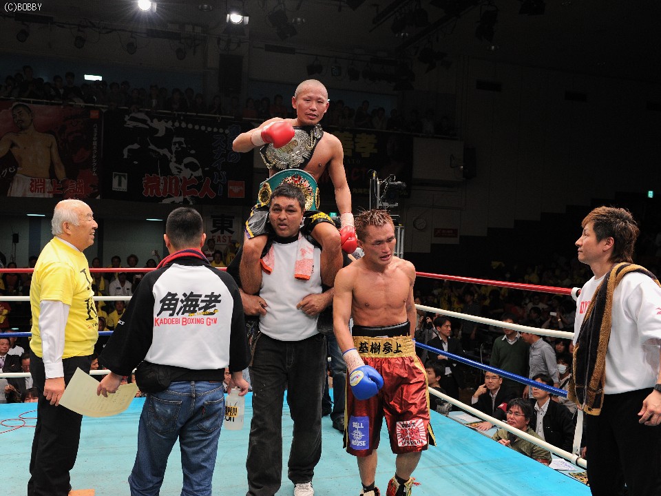 試合:加藤が日本&東洋2冠を制す!!加藤がワンツー・右ストレートで切り込むと、佐々木は左フック・右クロスで応戦する。ここで加藤はジャブでリズムを作り、右ストレート・左ボディを佐々木にヒットさせる。4R終了時、判定3-0(39-37・39-37・40-36)で加藤リード。しかし5R、クリンチ状態からストップが掛かるが両者は気が付かず、加藤の左フックがアゴを捕らえると、佐々木はキャンバスに大の字となってしまう。ここでレフェリーは佐々木に休息を取らせ、加藤はストップ後の加撃として減点1となった。中盤、佐々木がワンツー・左ボディで踏み込めば、加藤も右ストレート・左フックで顔面を捕らえる。7R、佐々木は低く入る場面が増え、バッティングで痛恨の減点1。8R終了時、判定3-0(77-74・77-73・77-73)で加藤。終盤、佐々木はワンツー・左ボディで猛追するが、加藤はブロックで連打を防ぎ、的確なワンツー・左フックを浴びせポイントアウト。加藤が判定で佐々木を退け、ライト級アジア最強の座に君臨した。