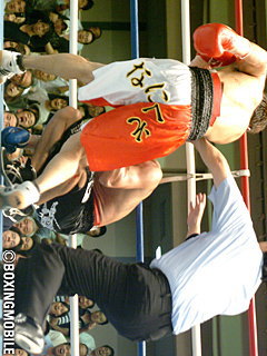試合:日本王者・沼田が元東洋王者・山口を迎えた初防衛戦は、前湯場戦に続き、今年のベストマッチに数えられる激闘となった。1R、開始から山口が王者・沼田を手数で圧し、沼田もこれに応戦。序盤から乱打戦の展開となった。2R、スピードのあるストレート系主体の山口に対し、沼田は左右フックの強打を山口のガードの上から打ち込む。前日本王者・湯場を沈めた沼田の連打を浴びても決して下がらない山口。逆に前に出てヒットを奪うなど流石は元東洋王者。3R、4Rと互いに攻守を入れ替え、ヒットを奪う激しい打ち合い。しかし5R、山口をコーナーに詰めた沼田が怒涛のラッシュ。山口はダウン寸前まで打ち込まれるが、ゴングに救われる。そして6R、山口はダメージを感じさせず、開始から打ち合いに応じるが、沼田が再び連打を浴びせると、ガードの上がらない山口は堪らずダウン。立ち上がったところに沼田は左右を浴びせ2度目のダウン奪い、さらに立ち上がる山口に最後は右フック。腰から落ちる山口をレフェリーが受け止め試合終了となった。劇的KO決着で初防衛を飾った沼田。日本王座長期防衛は確実か…。