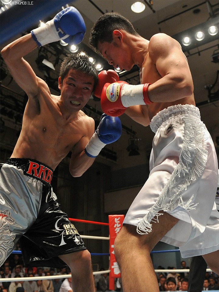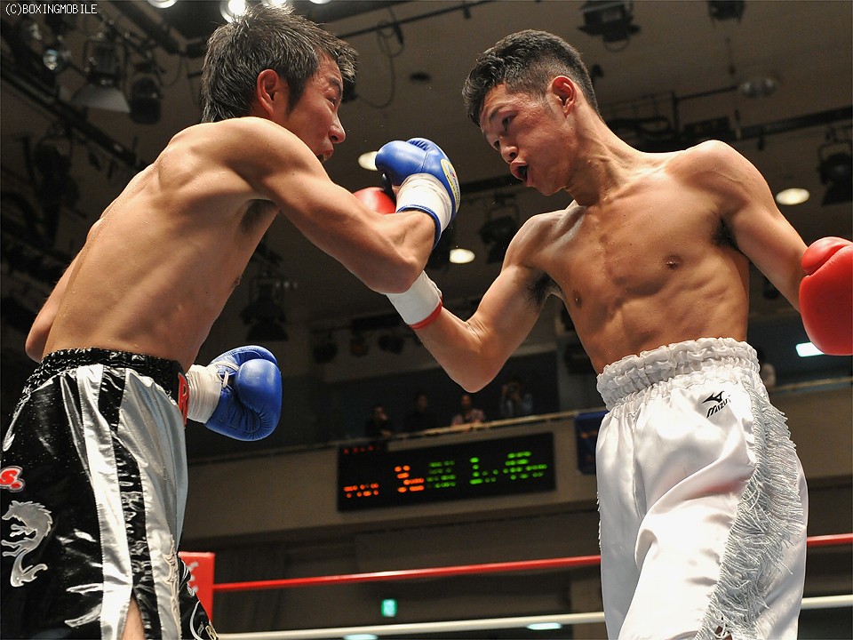 試合:丸山のワンツーが貫く!!ワンツーで前に出る丸山に対し、住友は右アッパー・左フックで応戦する。終盤、丸山はワンツー連打で住友をロープに押し込む。すると4R、丸山のワンツー連打に住友の膝が落ちると、堪らずレフェリーが割って入った。