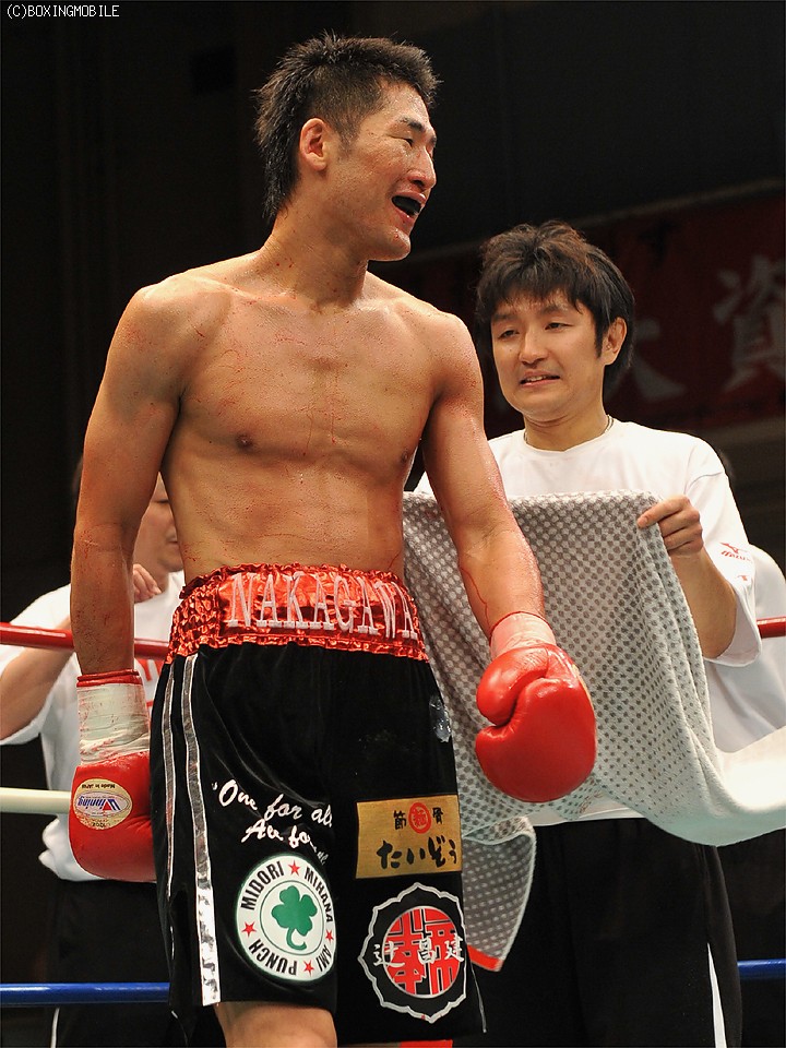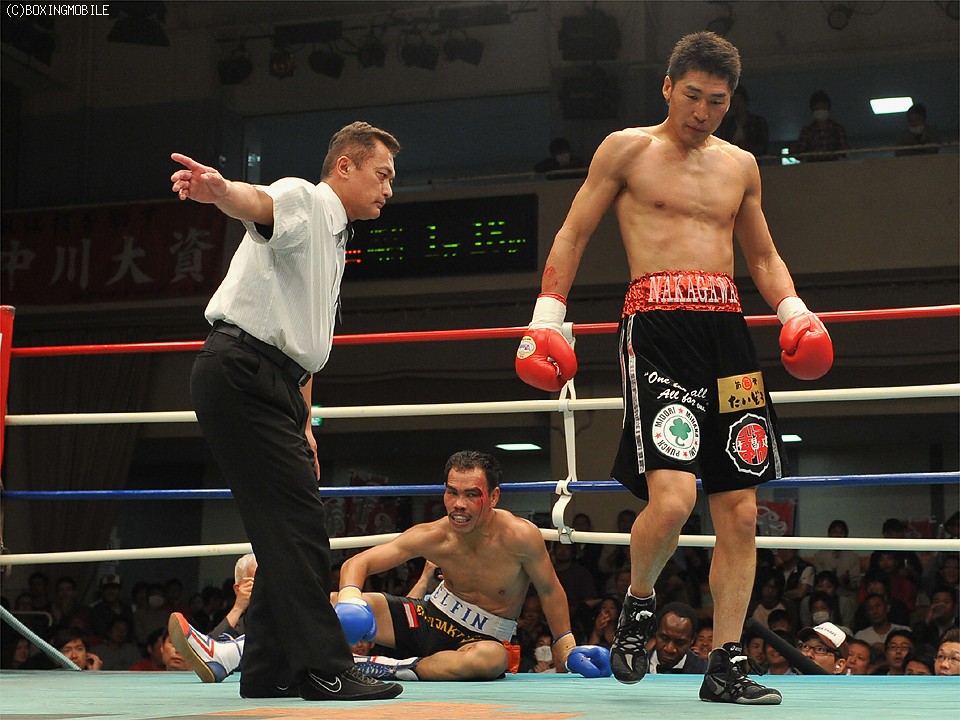 試合:中川の右ストレートが打ち抜く!!ガードを固めプレスを掛ける中川はワンツー・左右ボディでマルブンを下げる。すると3R、中川は右ストレートでマルブンにロープを背負わせ、左フックでダウンを奪う。立ち上がるマルブンだが、中川は右ストレートで顔面を跳ね上げ、追撃の右ストレートでインドネシア人をキャンバスに沈めた。