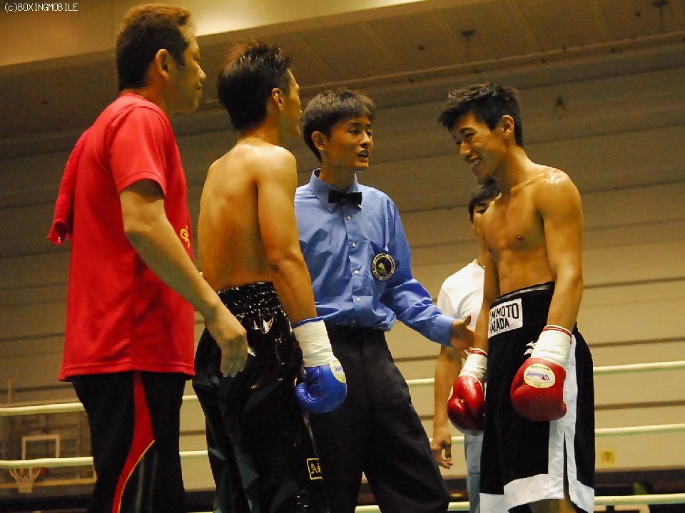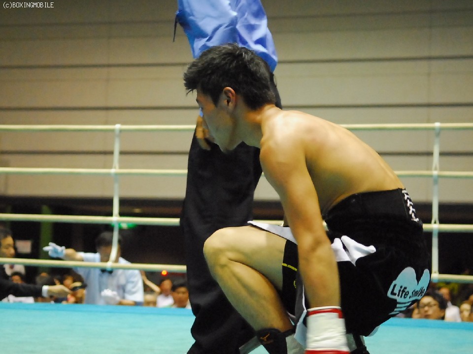 試合:サウスポーの河村は右ジャブから左ストレートを狙う、対して殿本は足を使い左ジャブ・左フックとダブルをあてていく。1R終盤、河村の左ストレートが決まり殿本はダウン、しかしダメージ少なく立ち上がる。終盤まで手数を出し続けた河村の判定勝利。