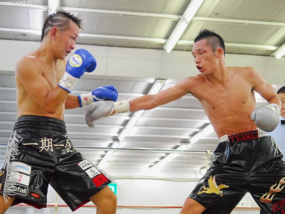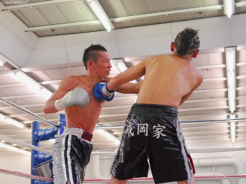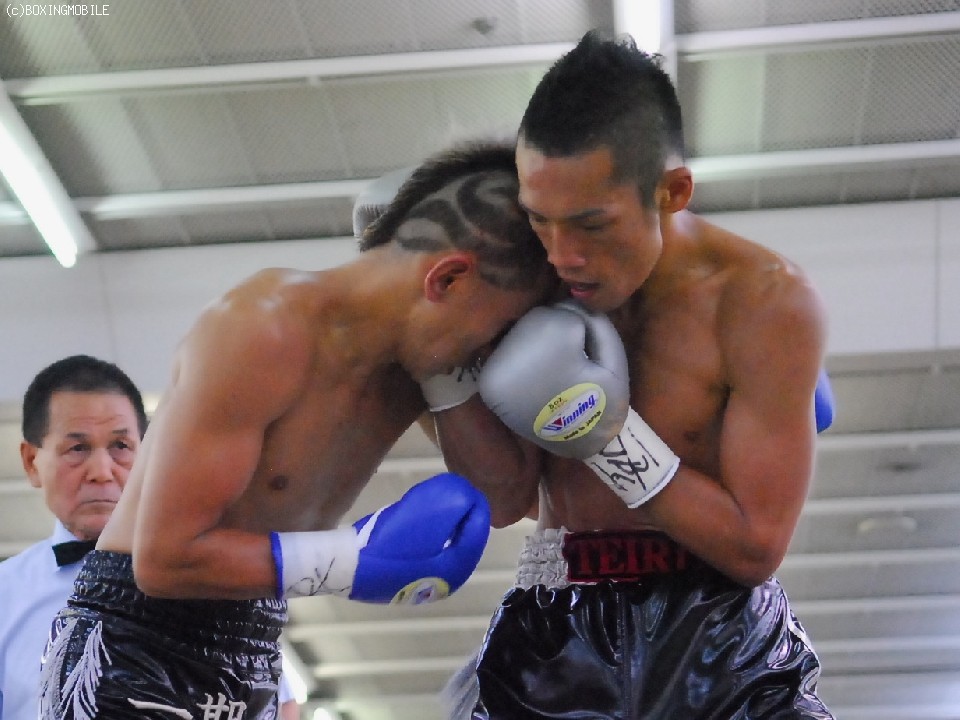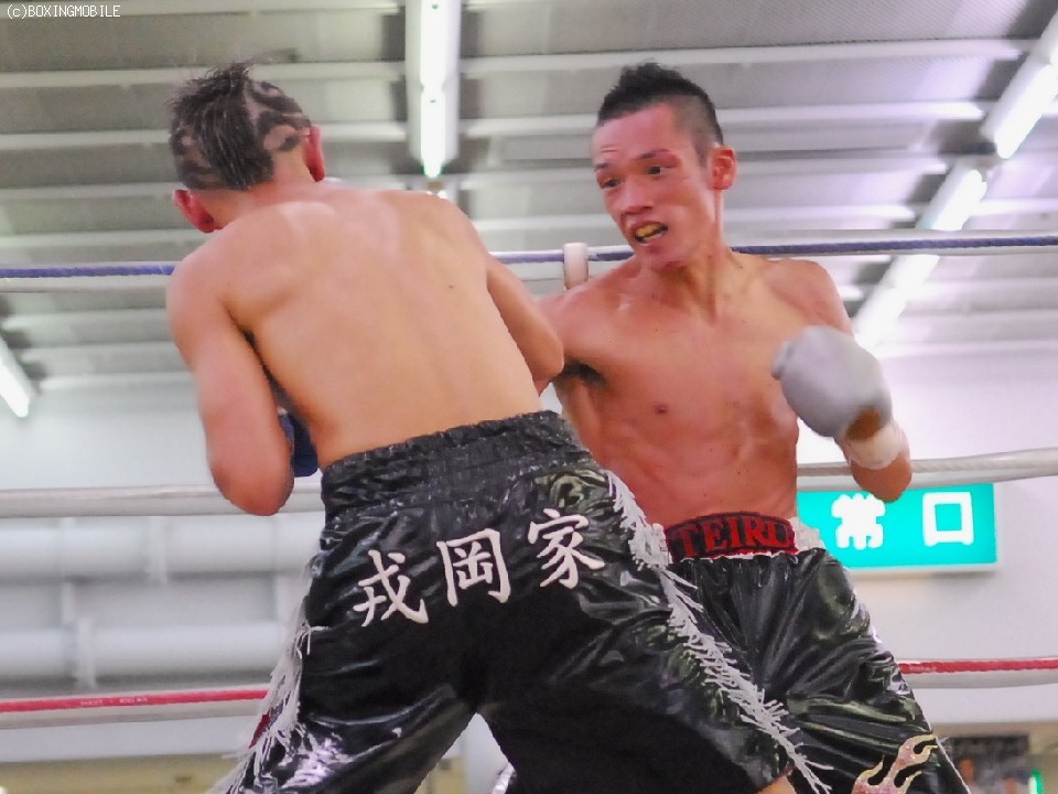 試合:序盤両者距離の取り合いで、ジャブの差し合いとなる展開。サウスポーの王者・帝里は右ジャブから右フックのダブルを狙い、対して戎岡はプレスをかけ帝里のジャブを交わすと右ストレートを的確にあてていく。中盤、距離を先につかんだ帝里は右ジャブを上下に打ち分け、鋭く踏み込むと左右のフックをあてる、戎岡もガードを固めて前に出ようとするが、帝里のジャブで前に出れない展開。6R終了間際、一瞬距離が噛みあった両者壮絶に打ち合うもゴングが鳴る。終盤、ラウンドの前半は帝里が右リードジャブで戎岡の踏み込みを交わし左ストレートを上下に打ち分けるが、後半は戎岡が右ジャブを交わし左右のフックを決めていく。終始的確な有効打を集めた王者・帝里が大差判定で4度目の防衛を果たす。