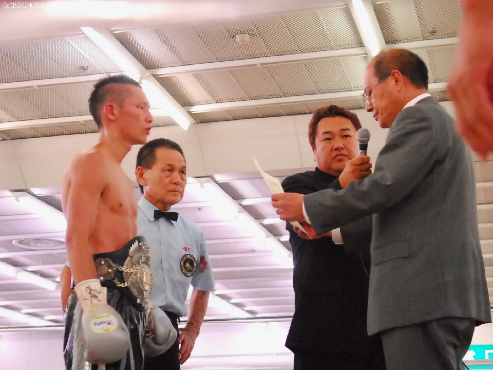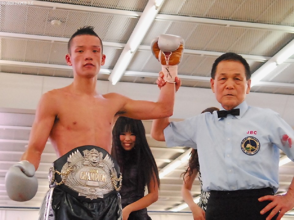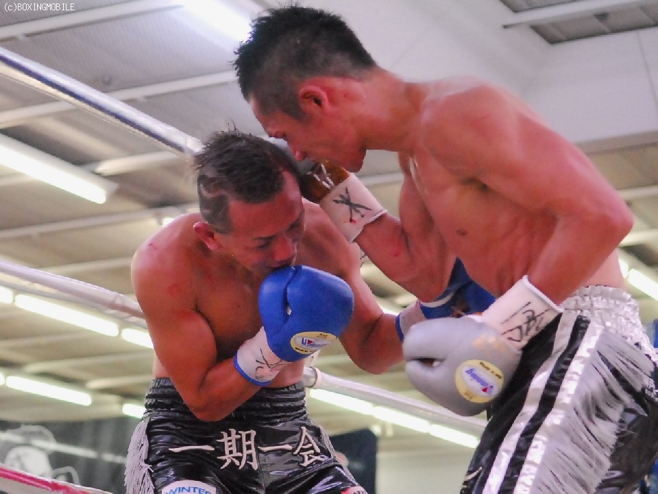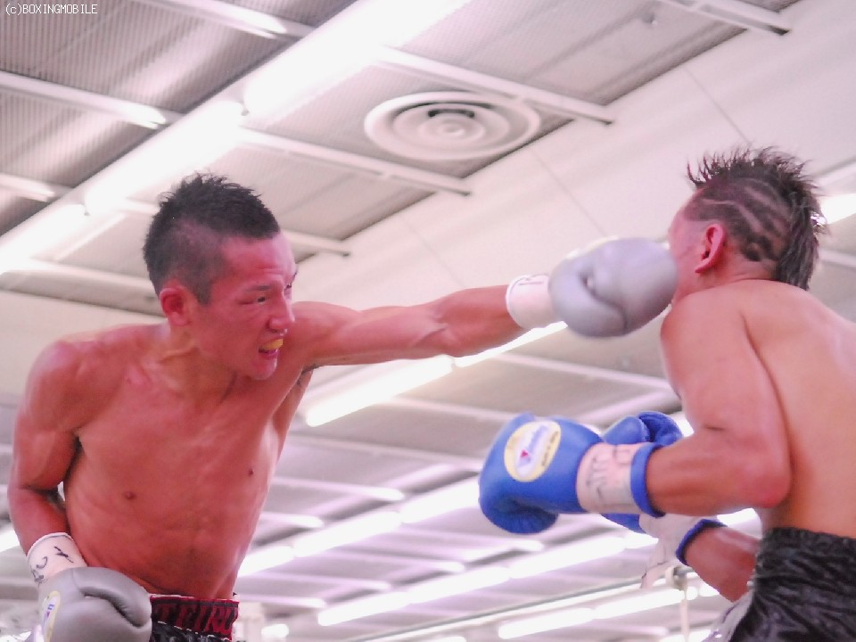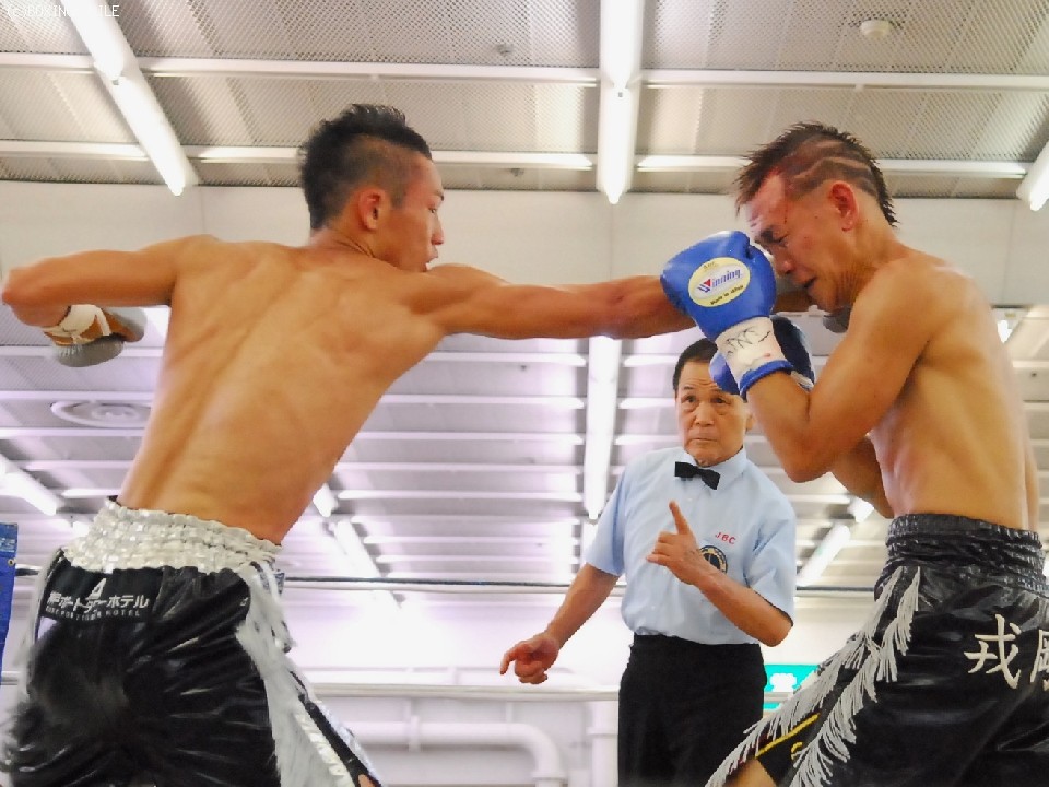 試合:序盤両者距離の取り合いで、ジャブの差し合いとなる展開。サウスポーの王者・帝里は右ジャブから右フックのダブルを狙い、対して戎岡はプレスをかけ帝里のジャブを交わすと右ストレートを的確にあてていく。中盤、距離を先につかんだ帝里は右ジャブを上下に打ち分け、鋭く踏み込むと左右のフックをあてる、戎岡もガードを固めて前に出ようとするが、帝里のジャブで前に出れない展開。6R終了間際、一瞬距離が噛みあった両者壮絶に打ち合うもゴングが鳴る。終盤、ラウンドの前半は帝里が右リードジャブで戎岡の踏み込みを交わし左ストレートを上下に打ち分けるが、後半は戎岡が右ジャブを交わし左右のフックを決めていく。終始的確な有効打を集めた王者・帝里が大差判定で4度目の防衛を果たす。