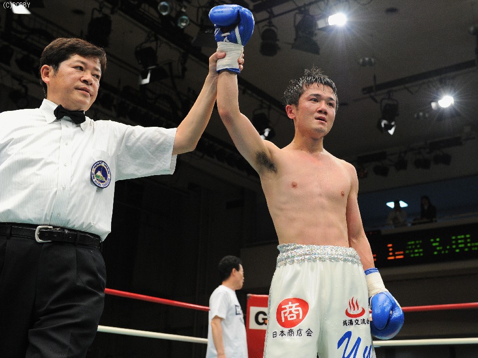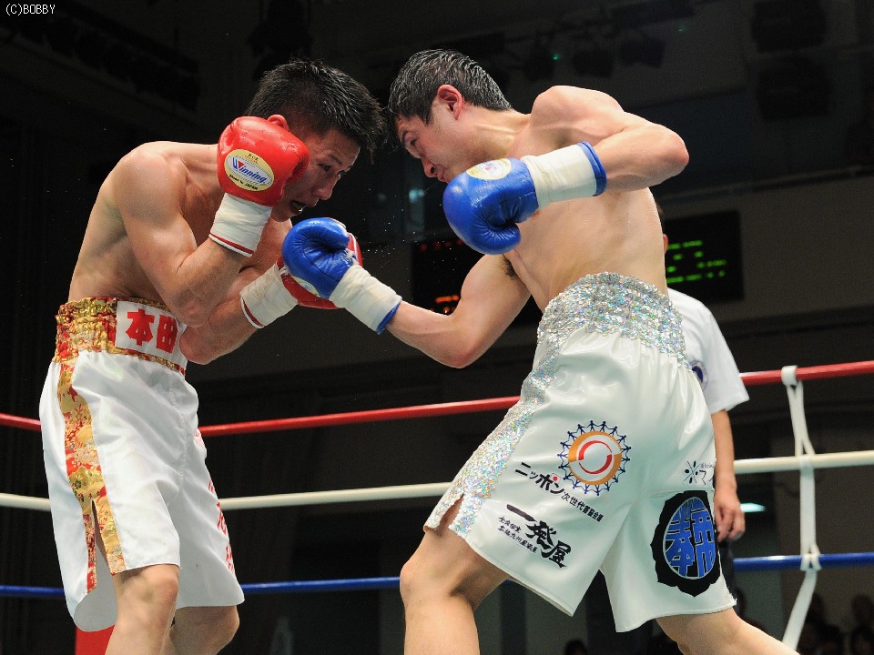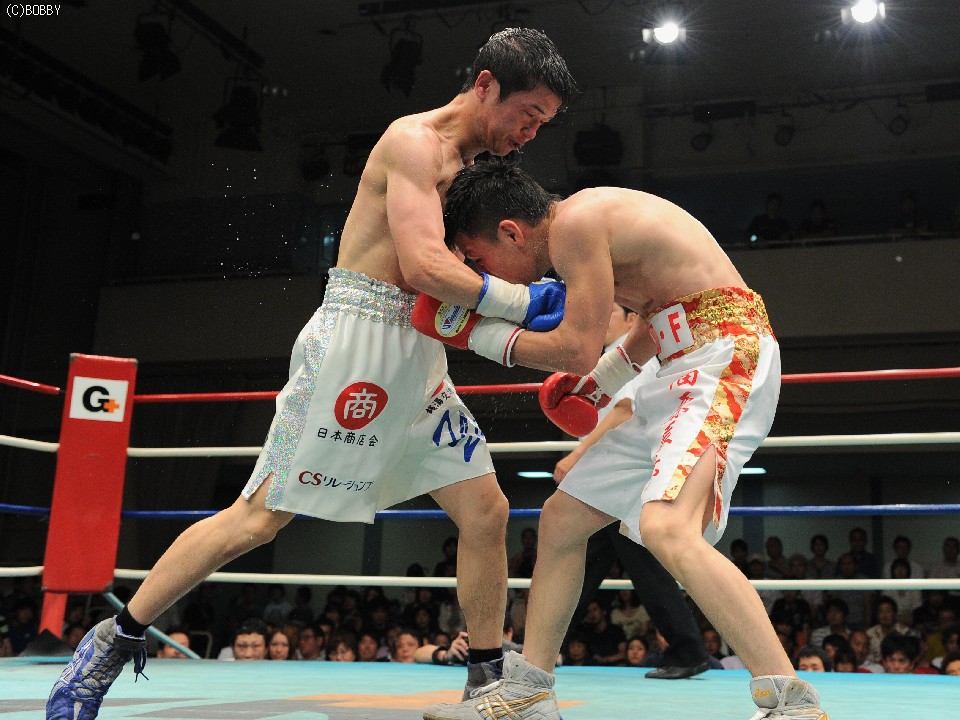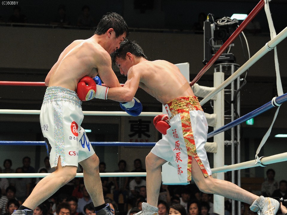 試合:フットワークを使うサウスポー福原を1Rに見極めた木村は、左フック、右ストレートの出入りのボクシングで中へ入らせず。中盤、福原は戦法を変えジャブからボディを狙い打ち合い覚悟で前へ出る。だが、木村は接近戦でも押し負けず、ボディからフック、アッパーで優位に立つと、終盤も確実に右へとつなぎ有効打を取り続けた。