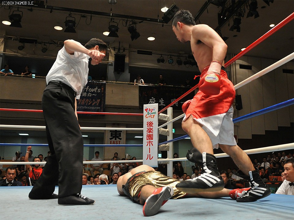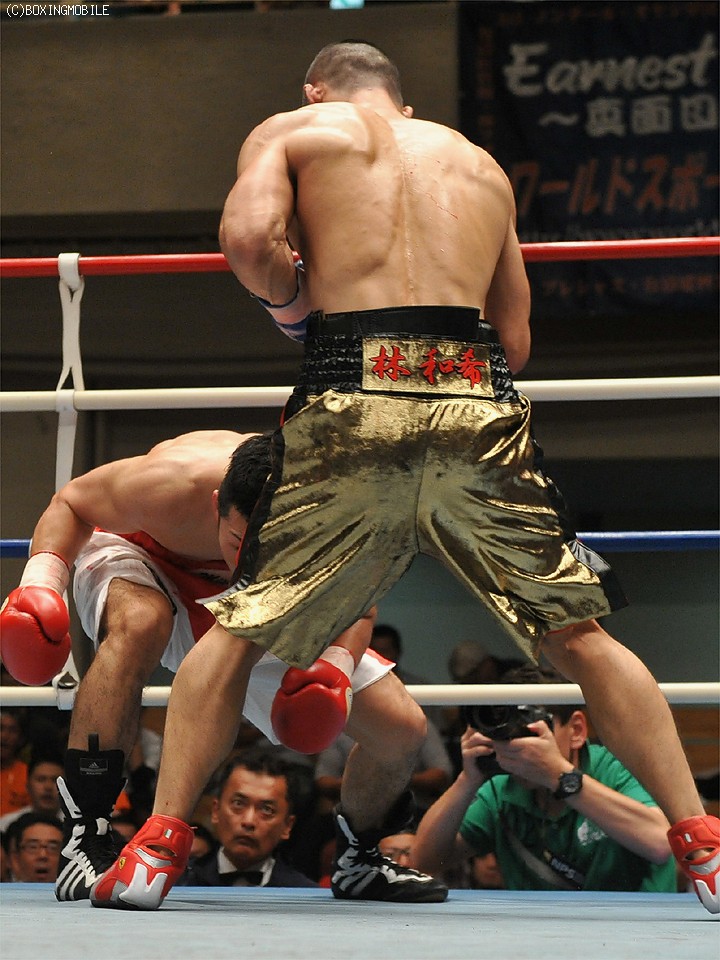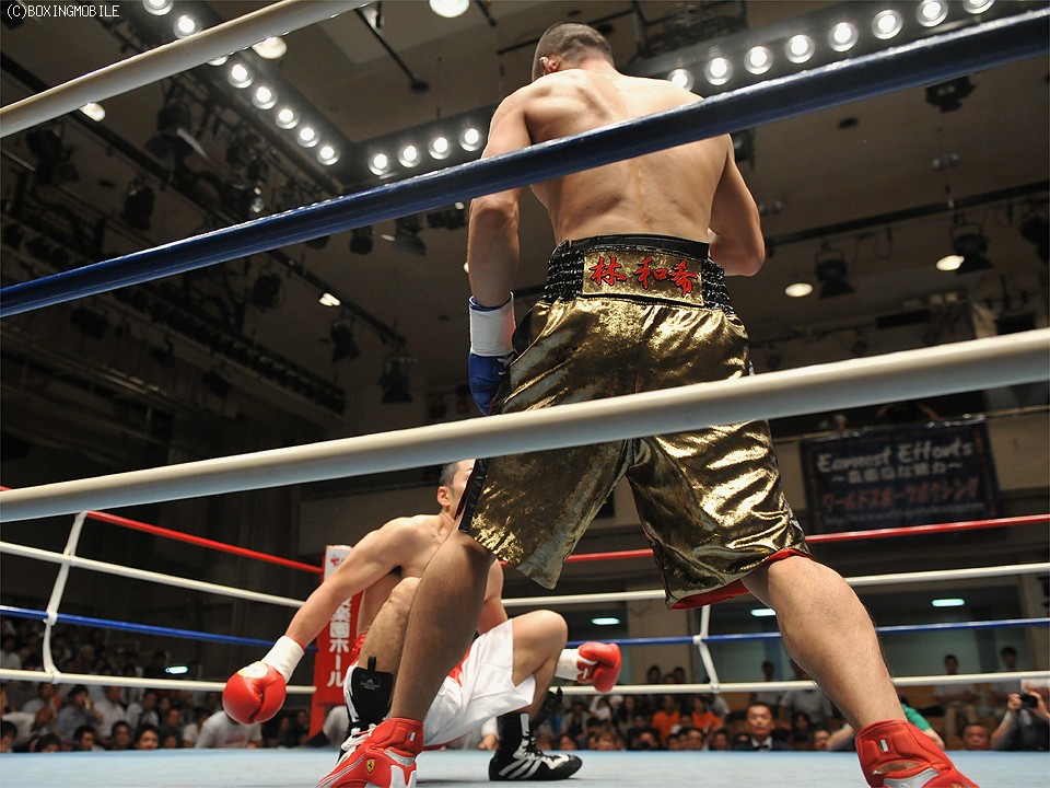 ・右ストレートを浴びダウンを喫する。中盤、林は勢いに乗り右ストレート・右アッパーで顔面を捕らえるが、小竹も左ストレート・左アッパーで応戦する。しかし最終8R、小竹の左ストレートに林は大きくのけ反り、ワンツー・右フックで前のめりにダウン、何とか立ち上がるが10カウントが数えられた。