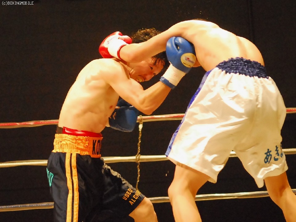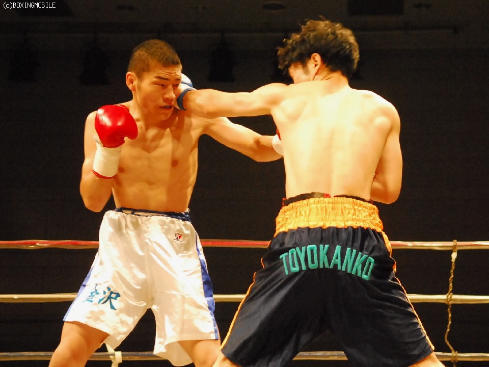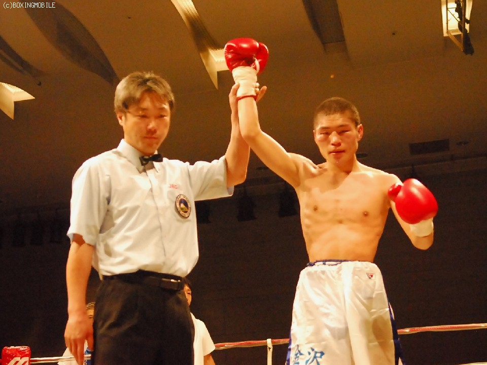 試合:金沢は板垣の打ち終わりに左ジャブから右ストレートを顔面にめり込ませる。対して板垣は左フックを打ちながら鋭く踏み込むとワンツーをあてていく。4R中盤、板垣は再三のオープンブローで1点減点される。終盤板垣は、プレスを強め左ジャブから攻勢をかけるも決めきれず。判定で金沢の勝利。