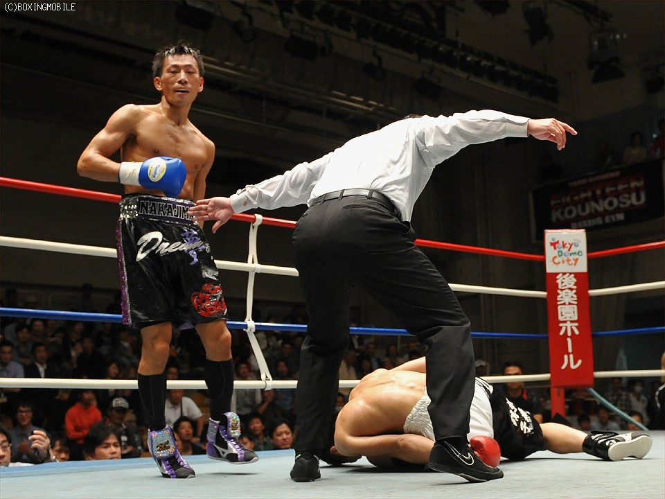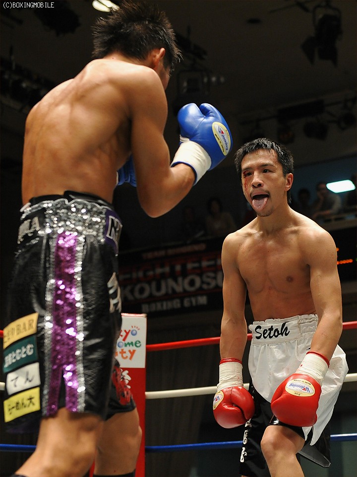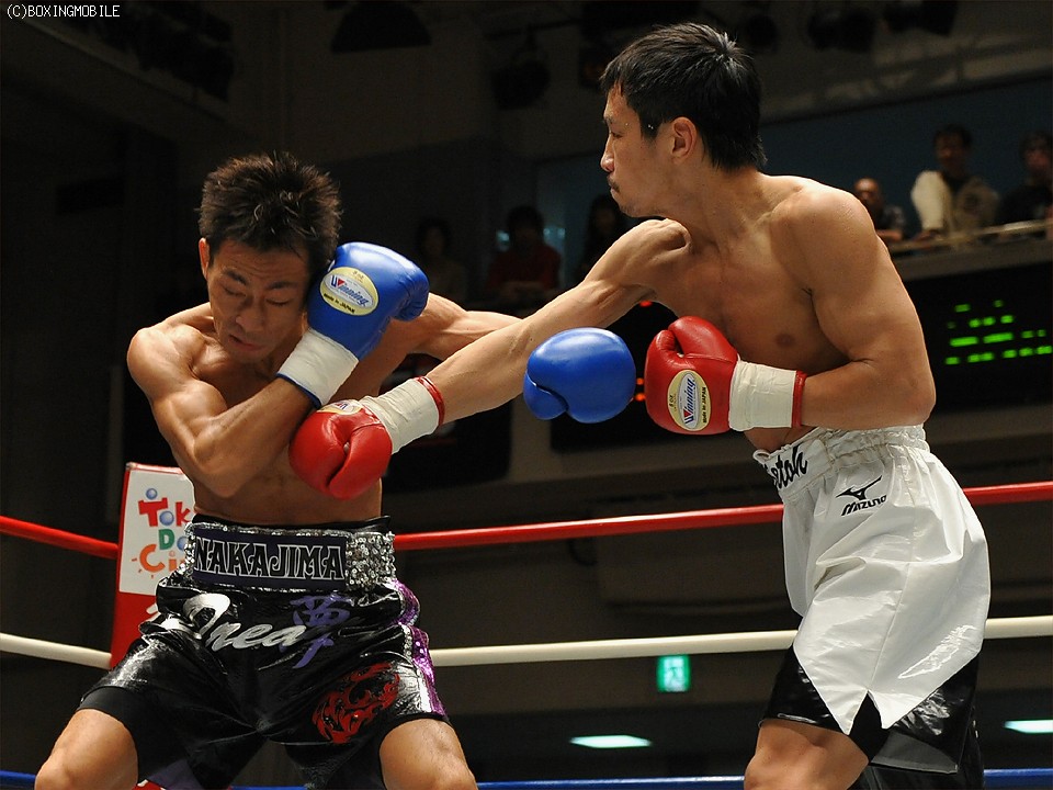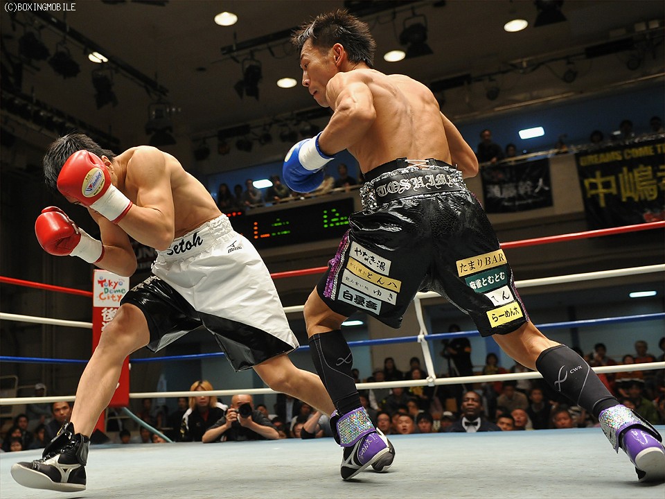 試合:瀬藤の変則スタイルに戸惑い気味だった中嶋だが、初回終了間際に右でダウンを奪った。2回には立ち直りをみせた瀬藤だが、中嶋の左を浴びるなど危ない場面があった。それでもノーガードで前に出た瀬藤だが、3回、中嶋の右を浴びてグラリ。そのうえバッティングで右目上をカット、厳しい状況に追い込まれた。KOはそんな矢先、4回に唐突に訪れた。中嶋のワンツーがクリーンヒット、瀬藤が再びダウンを喫したのだ。ダメージが深いとみたレフェリーが、そのままストップを宣告した。