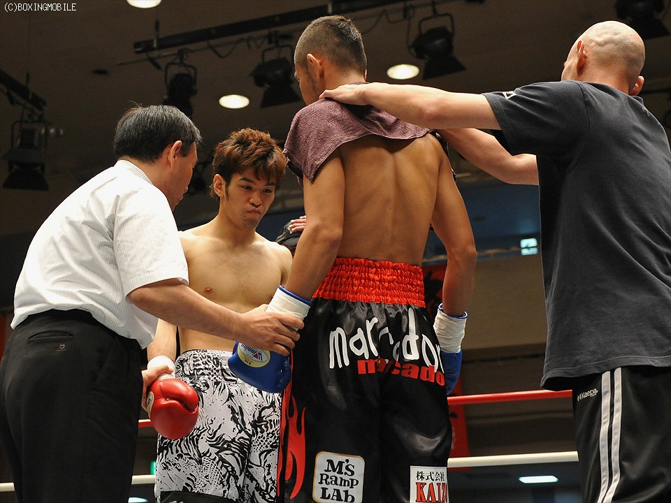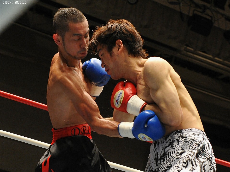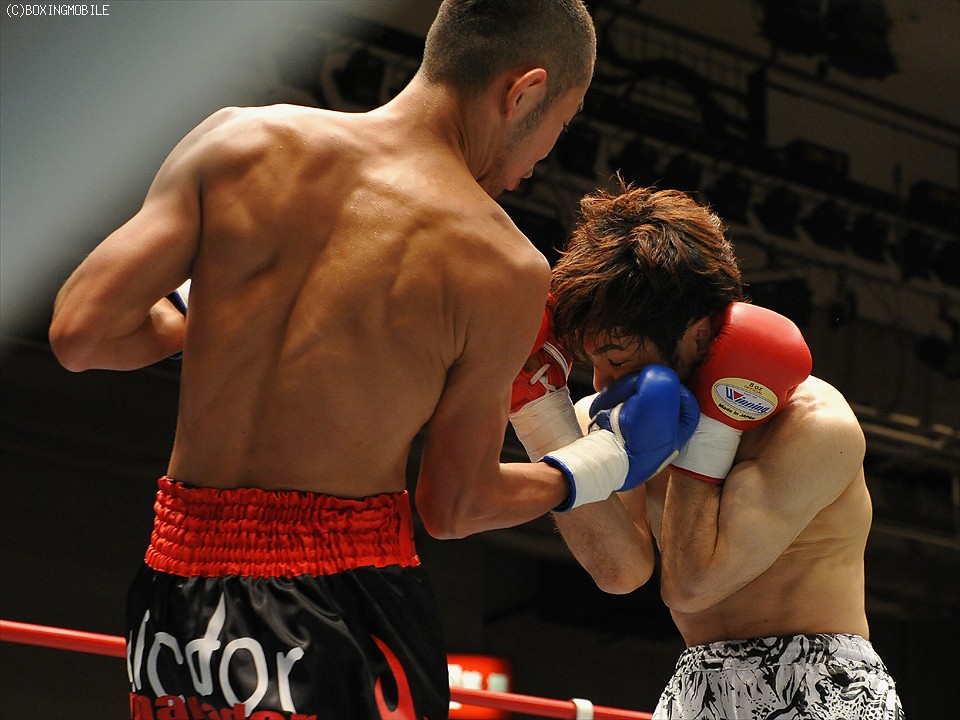 試合:低い体勢でプレッシャーをかけたサウスポーの菊地だったが、試合は終始高畑のペースで判定勝ち。