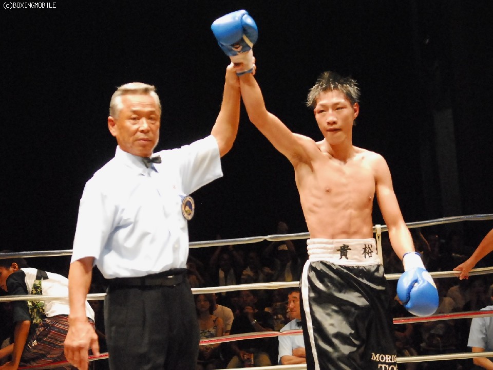 試合:長田はプレスをかけると左ジャブからボディに右ストレートをあてていく。対して村井はワンツーを的確にヒットさせていく。2R終了間際、攻め込んでいた長田の一瞬の隙を見つけ村井が右ストレートを伸ばすと見事に決まり長田がダウン。長田はダメージ深く立ち上がるもゴングに救われる。終盤、接近戦となり両者ボディの打ち合いとなる。判定で村井の勝利。