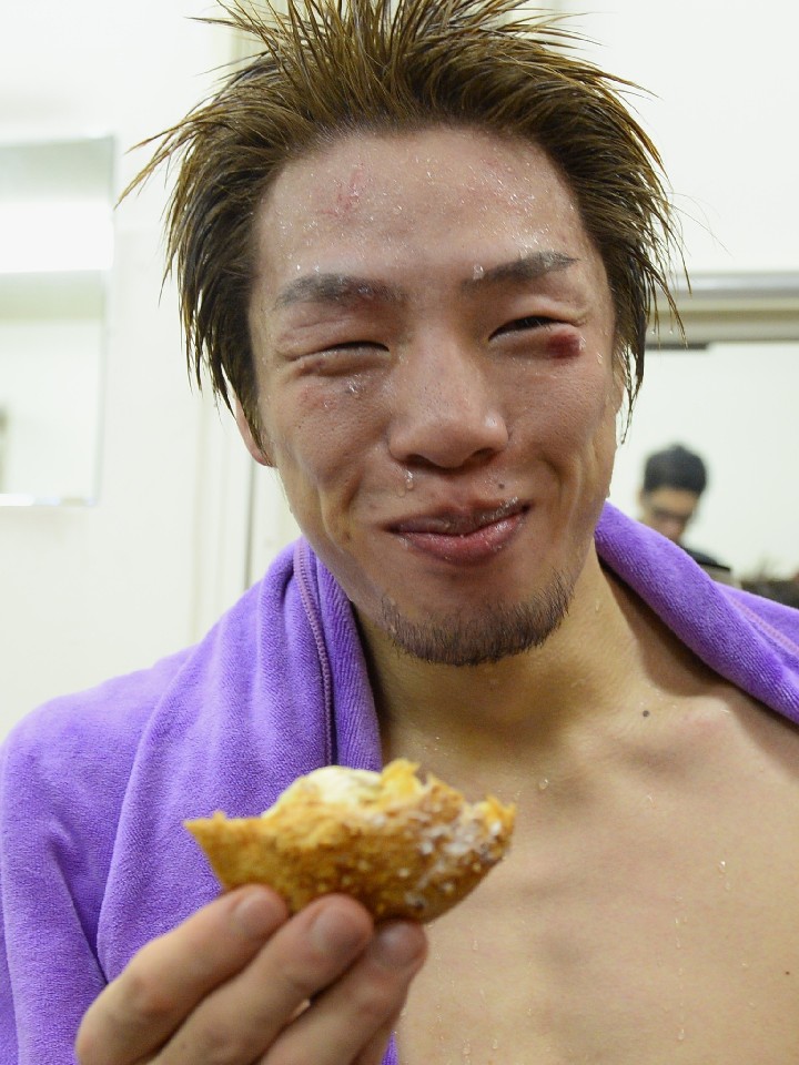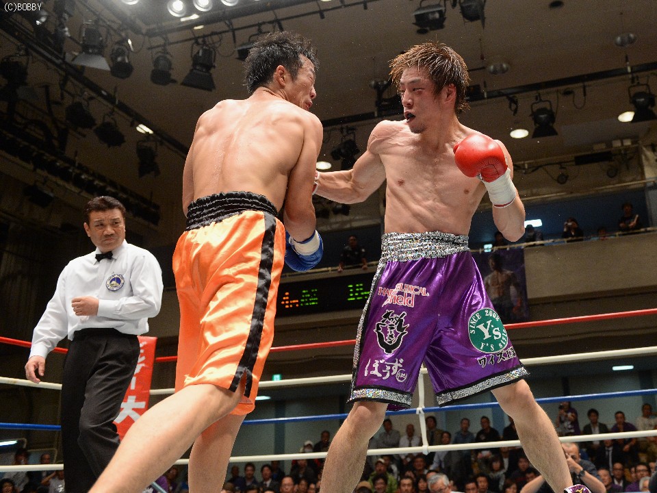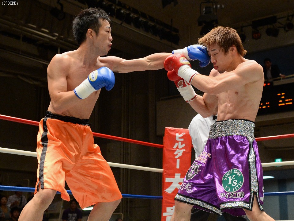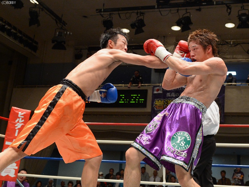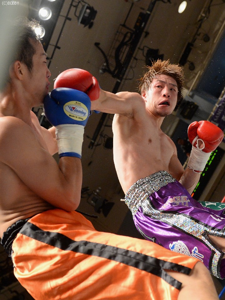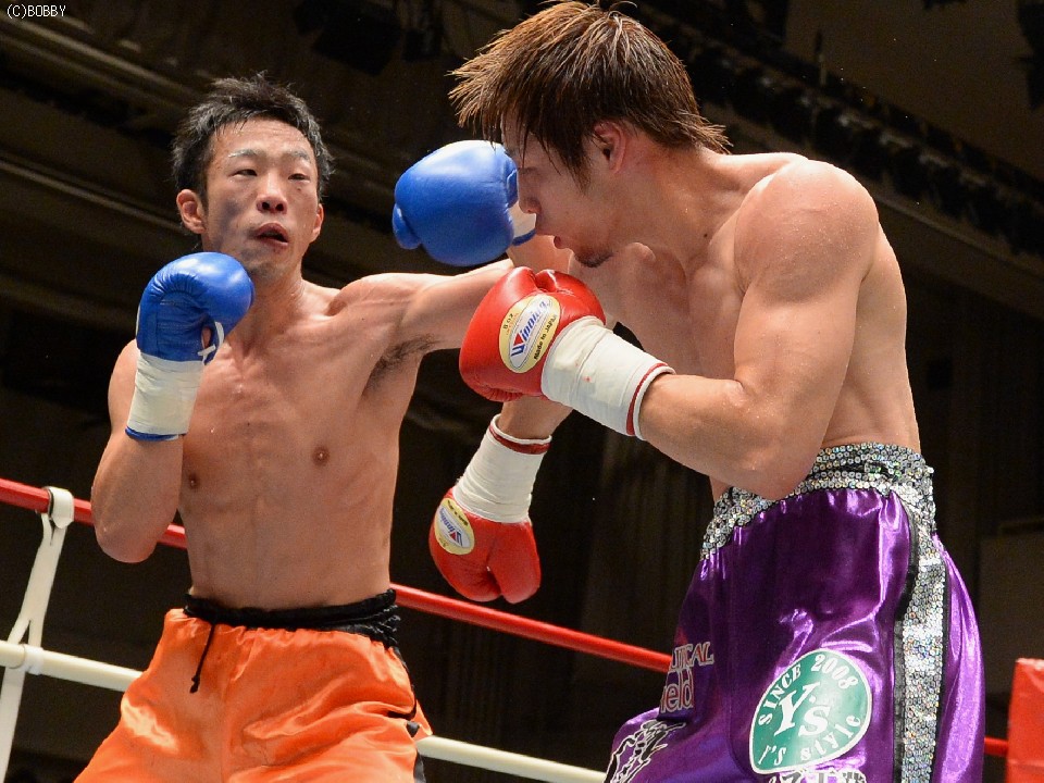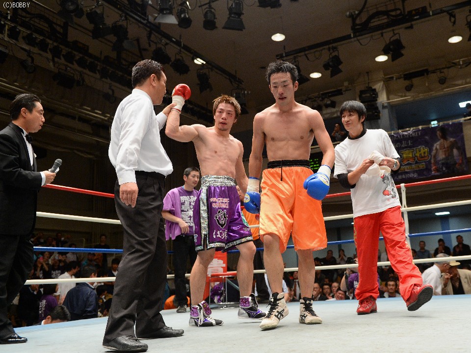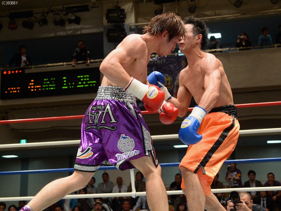 試合:岩渕の半年ぶりの再起戦。昨年度の西日本新人王の小川は、足を使って距離を保ち、圧力をかけるサウスポー岩渕の勢いをジャブ、ワンツーで封殺。ストレートで岩渕の顔を跳ね上げるなど、右のタイミングは合っている。岩渕は試合感が戻らないのか、今ひとつ本来のキレのある姿が見れず。防御の反応も悪く、相打ちでの左ストレートがヒットするだけ。苦しい岩渕を尻目に、調子を上げていた小川だったが、4Rの打ち合いで岩渕の左ストレートが決まりダウン。起き上がり、立て直しを計る小川だったが、今度は勢いついた岩渕を止められず連打を浴びストップ。岩渕は再起戦をTKO勝利で飾ったが、不安要素は残った。