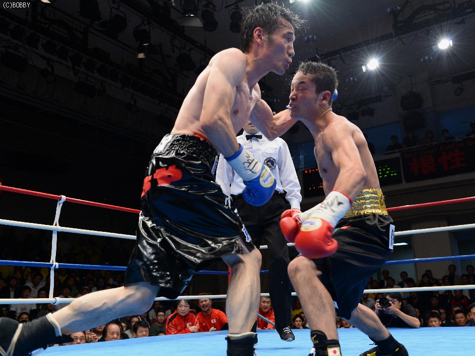 試合:身長で勝るサウスポーの國重が引退をかけてリングに上がった。小刻みにリズムを取りながらステップイン、アウトを繰り返す國重。2R、チャンピオン原の右ショートストレートが挑戦者をとらえた。クリンチが少なくテンポのいい両者が迎えた3R、國重の左ストレートでチャンピオンがダウン。落ち着いて立ち上がった原は前に出て上下左右にパンチを散らすが國重はカウンターを合わせて追撃を許さず。4Rに原がノーモーションで放つ右ショートボディを巧みに打ち込むとペースをつかみかけるが、國重も力強く踏み込んでワンツーを打ち抜き一進一退の攻防を続けた。プレスをかけるチャンピオンとカウンターを狙う挑戦者。後楽園ホールは大歓声。ペースはつかむがとらえきれないチャンピオン。7Rと10Rに國重がホールディングとレスリングで減点1。終盤は攻めるチャンピオンに挑戦者がクリンチで難を逃れ、試合が何度も中断された。