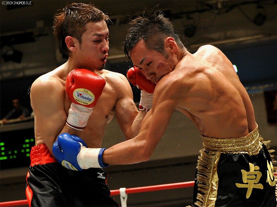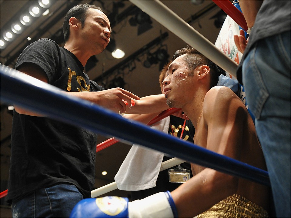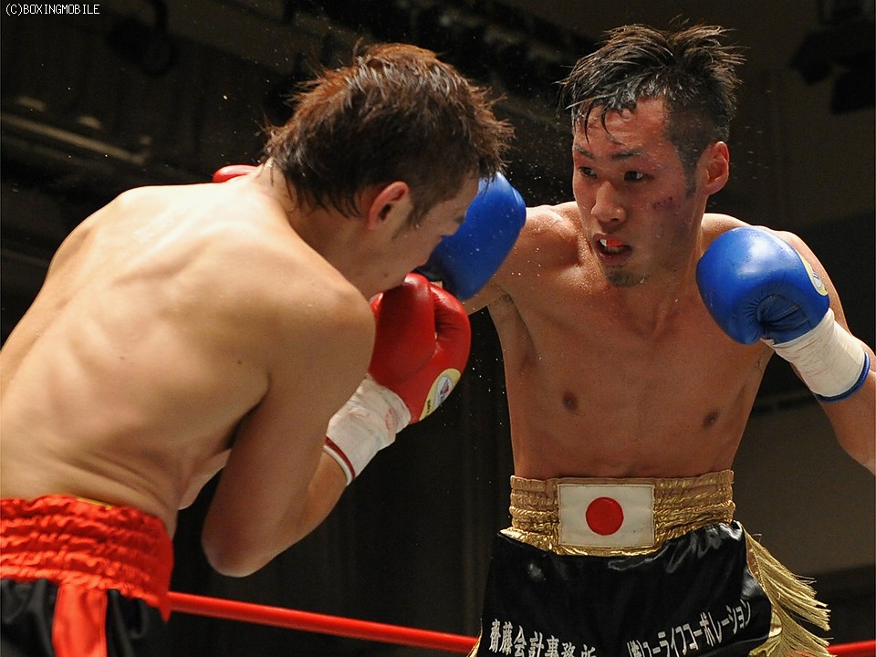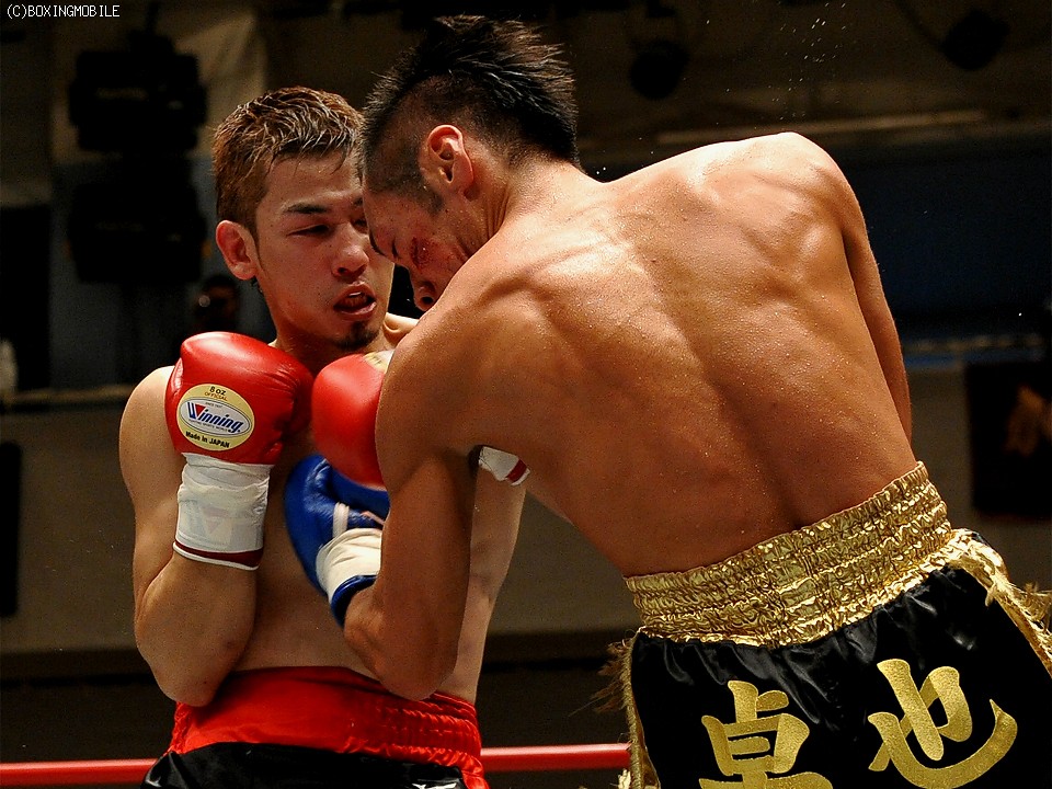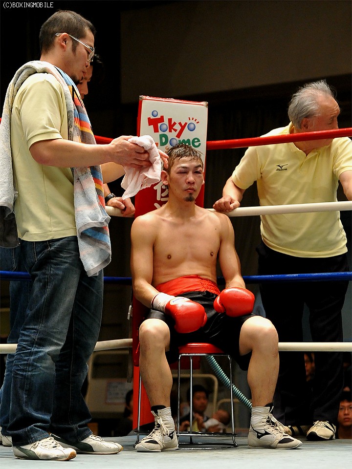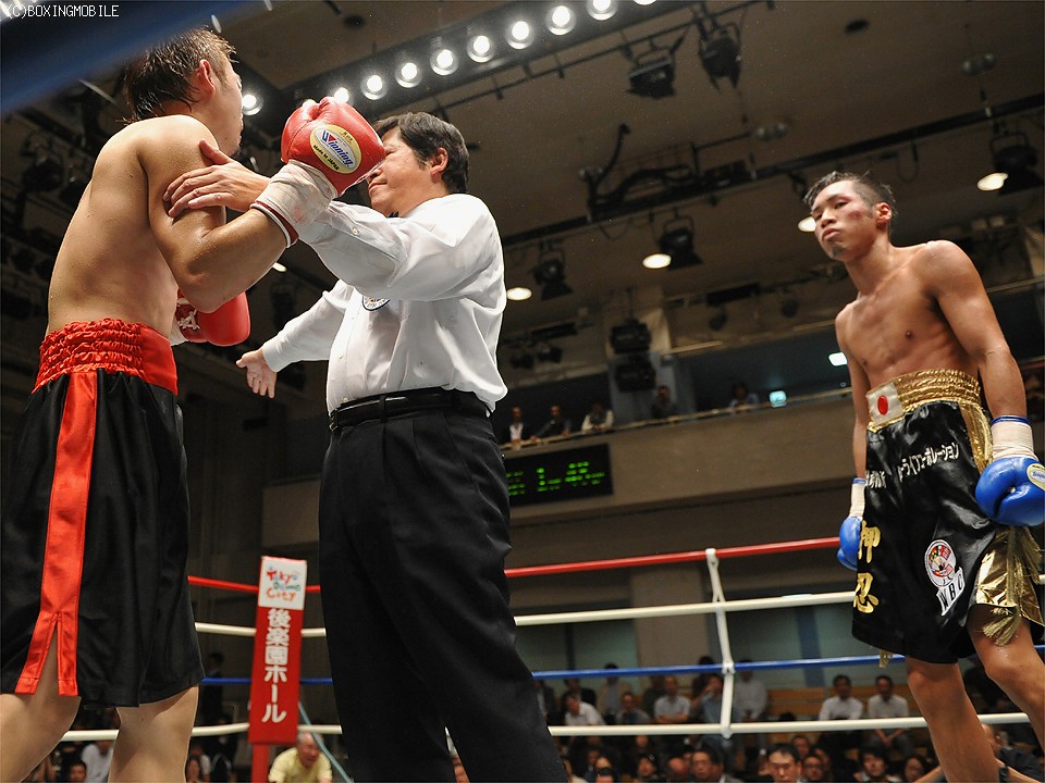 試合:距離を取り的確にジャブを当てる渡邉。間合いを潰したい柏原だが、踏み込みをジャブで潰される。中盤、ようやく打ち合いに出た柏原は、左眼上をヒッティングによりカット。後半、またもジャブに阻まれ一方的な展開となり7R、渡邉のワンツーが柏原の顔面を捕らえると、レフェリーが試合を止めた。