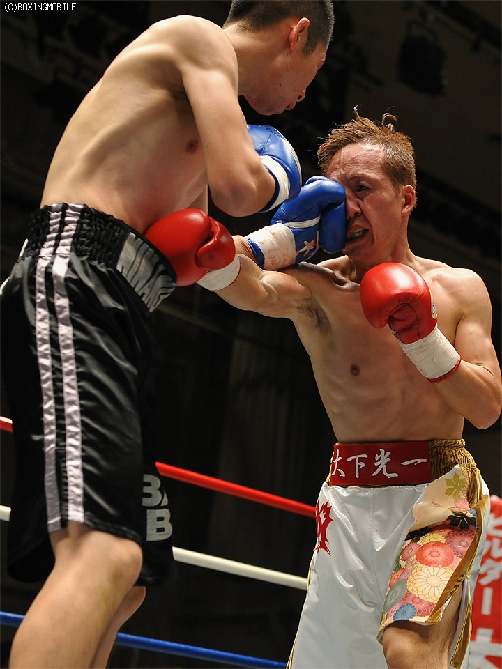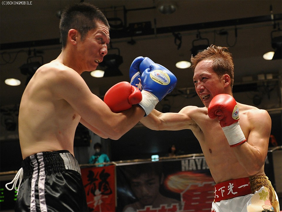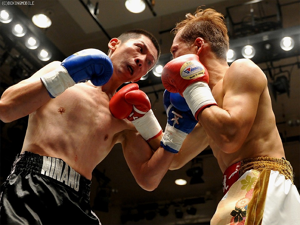 試合:ワンツーで前に出る両者の打ち合いから始まったこの試合は、互いに一歩も引かずにリングを回る。距離が近くなった2R、体を反しながらフックを織り混ぜてコンパクトにパンチを放つ三浦が主導権を握りかけるが定まらず。手数は減らず。クリンチもないが、決定的チャンスには至らず。一進一退の殴りあいは判定に。