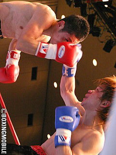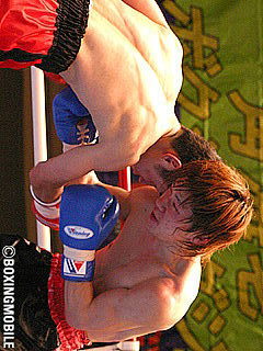 試合:1R、田中の左右の連打で久保いきなりのダウン。久保の前半は突っ込みながらの大振りパンチ。ガードもほとんどなしで田中に打たれ放題。2Rにもダウンの久保。しかし後半、スタミナを消耗した田中に久保もリズムを掴み始め、両者激しい打ち合いとなった。