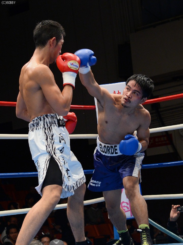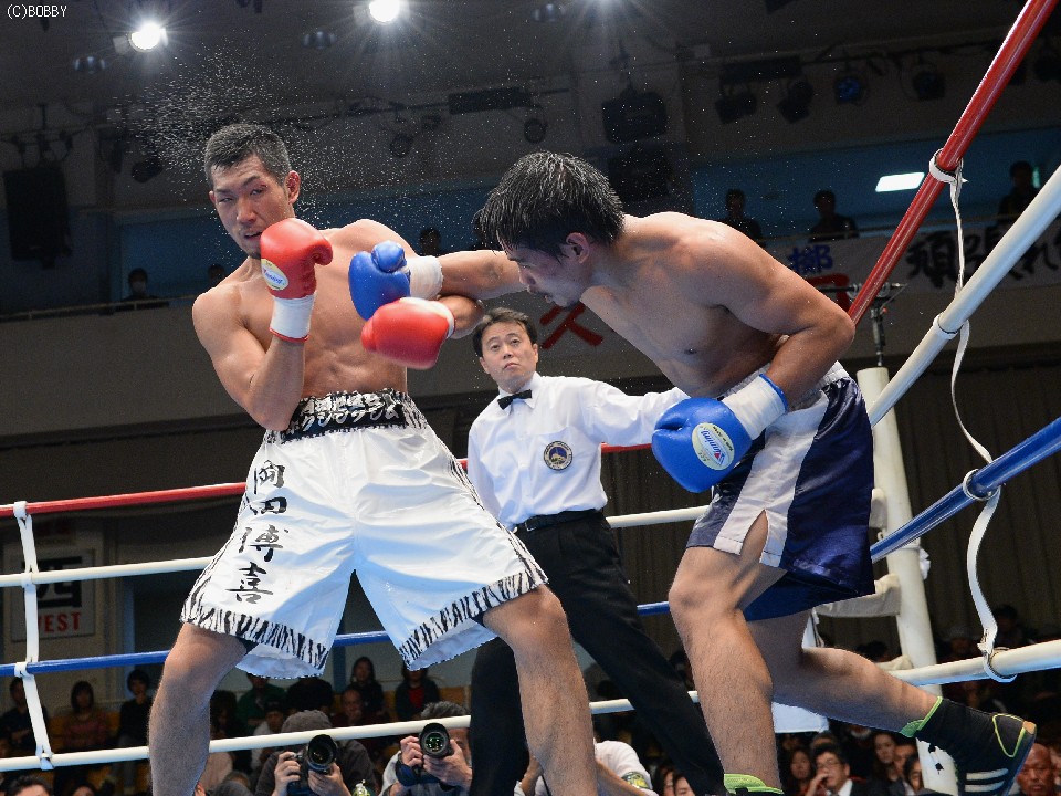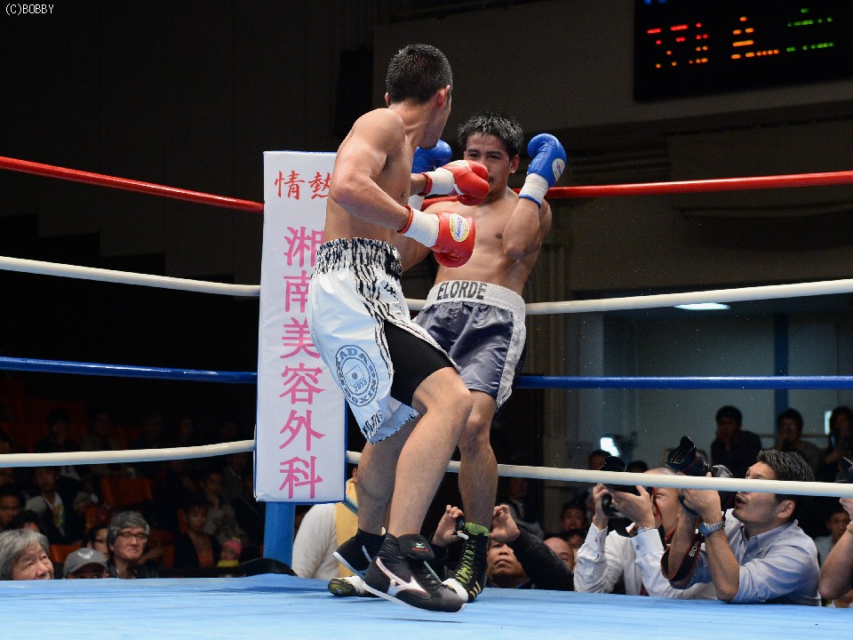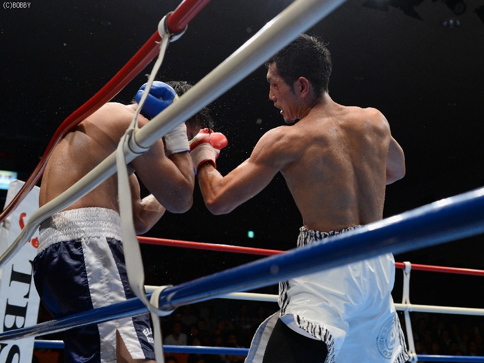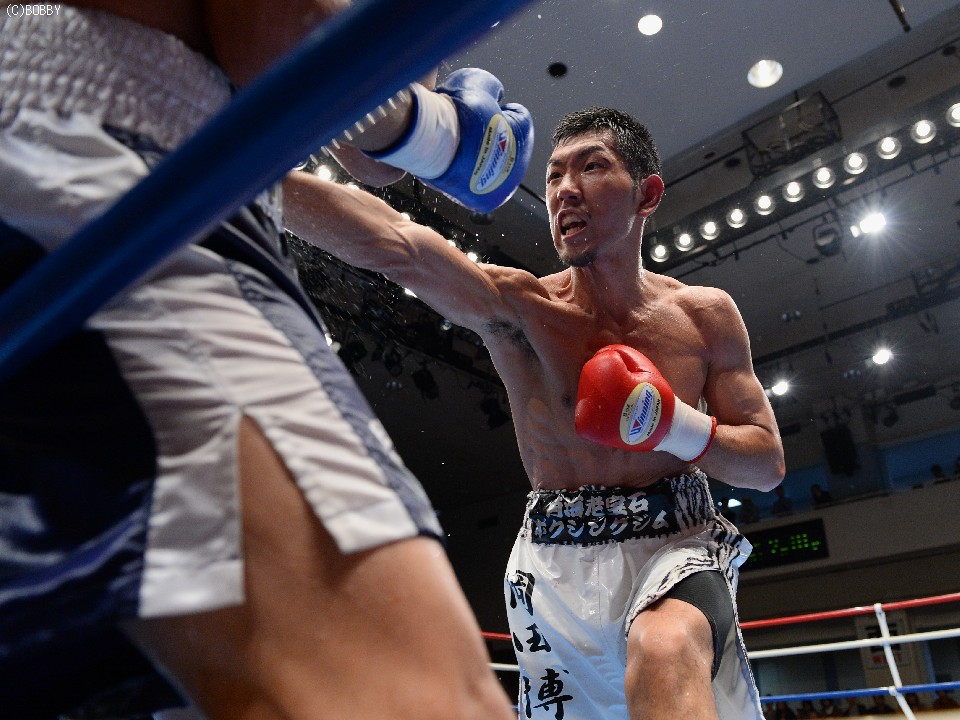 試合:大声援に後押しされてリングインした岡田。プレスをかけて距離を詰める岡田はイグナシオにロープを背負わせてノックアウトのタイミングを計るが左のリードの後が出ない。テンポアップしたのは3R、岡田がロープを背にするイグナシオにワンツーとボディで仕留めにかかる。が、イグナシオは左ボディとカウンターで応戦。打たれ強いイグナシオは変則的な左アッパーボディを返して決定的チャンスを許さず。優勢に試合を組み立てる岡田。最後ラウンドに漸く連打をまとめた岡田がTKO勝利。