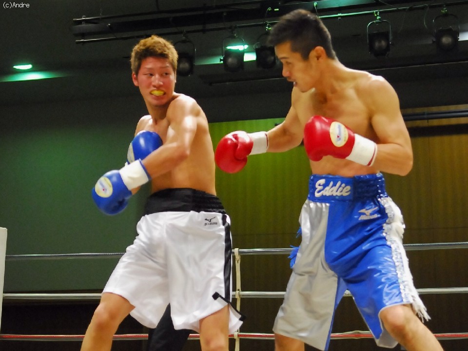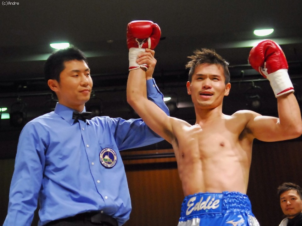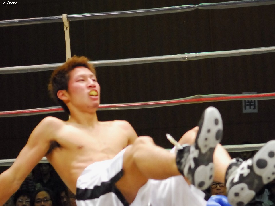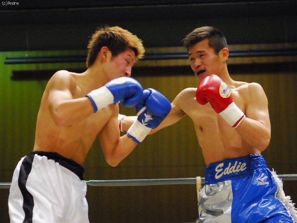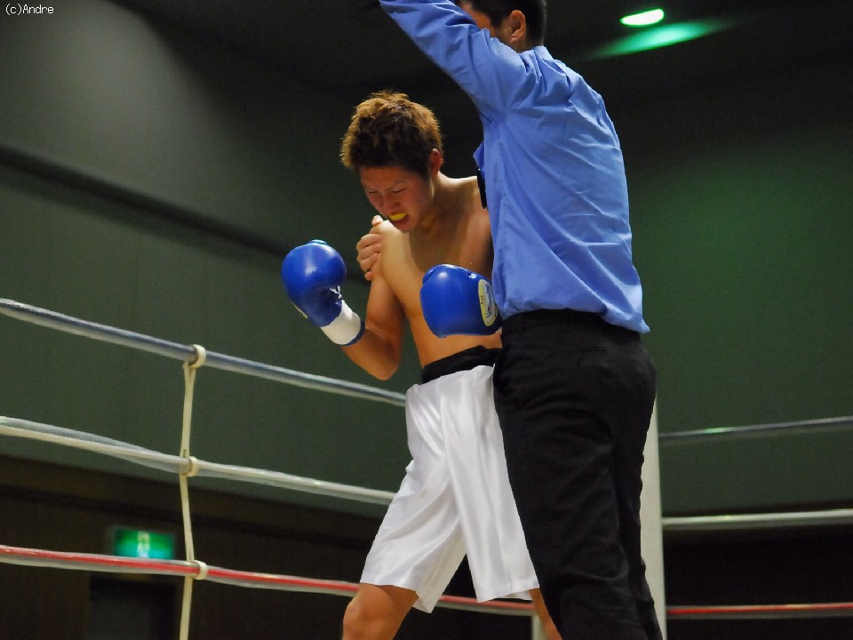 試合:序盤から打ち合う両者。サウスポーの福永はワンツーを的確あてていく。デビュー戦の細川は緊張からか強振が空を切る。1R終盤、福永の左ストレートが決まり細川がダウン。立ち上がるも膝が揺れ10カウントをきく。福永のKO勝利。
