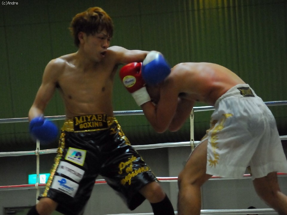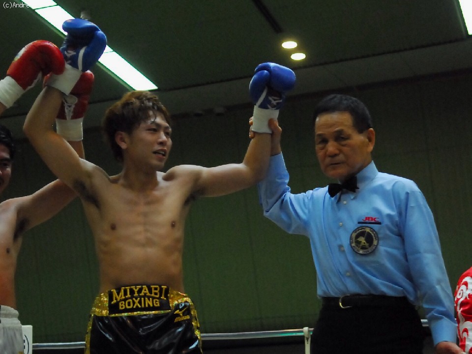 試合:川口は左ジャブを起点に右フック・アッパーと巧みな攻撃をみせる。対してヨードグンはガードを固め頭を振りながら踏み込むと大きな右フックを放つ。川口はプレスをかけ飛び込みながら右アッパーをあてる。ヨードグンもロープを背にするも山口の打ち終わりに右フックを狙う。有効打を集めた川口の判定勝利。
