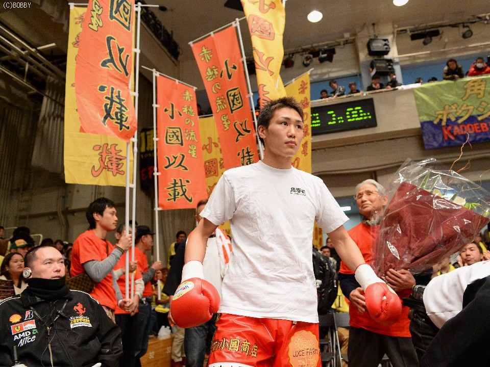 試合:元OPBF王者で移籍2戦目の小國が、後楽園ホール初登場の藤本と対戦。ガードを固め左右ボディで圧力をかける藤本に対し、小國は強弱をつけたジャブからストレートを上下に突き刺すが、相手のリズムに合わせてしまい攻撃のテンポが遅い。藤本の上のガードが固いこともあったが、それでもこの日の小國はスピードとキレもなく、試合は盛り上がりに欠けたまま後半まで進行。最後こそ右ストレートで藤本の顔を弾きストップを呼び込んだものの、小國にとっては課題の残る試合となった。