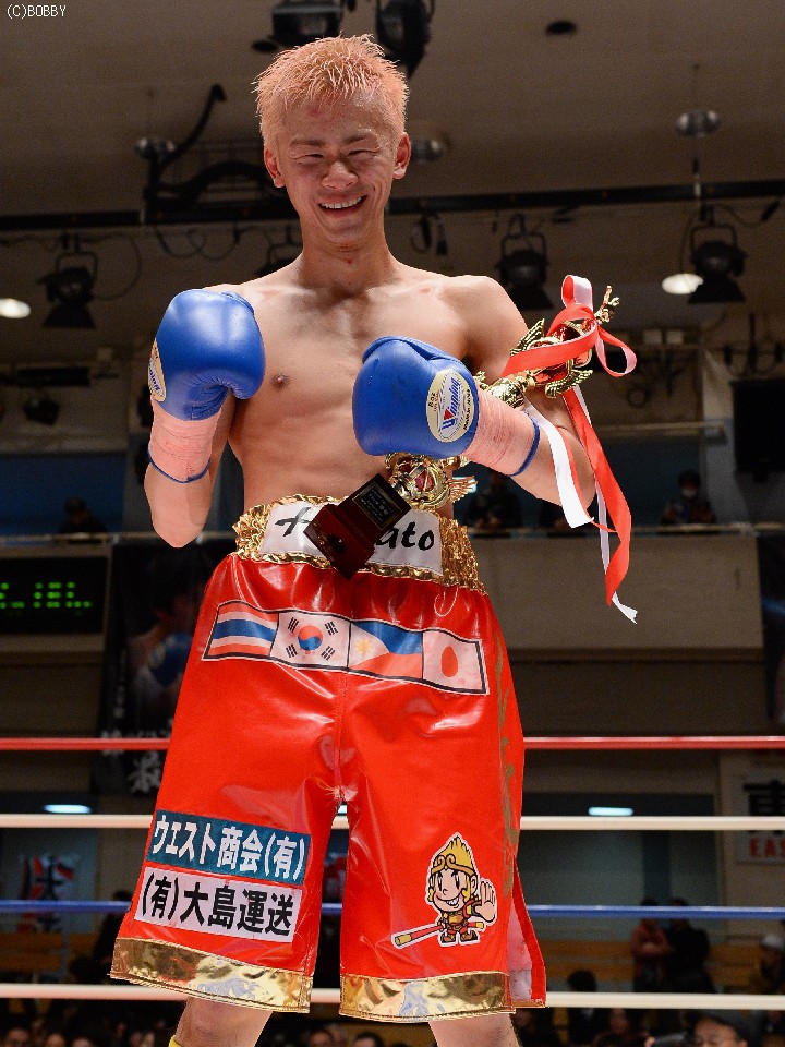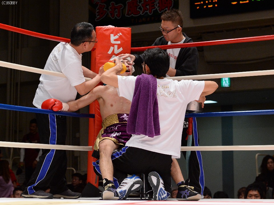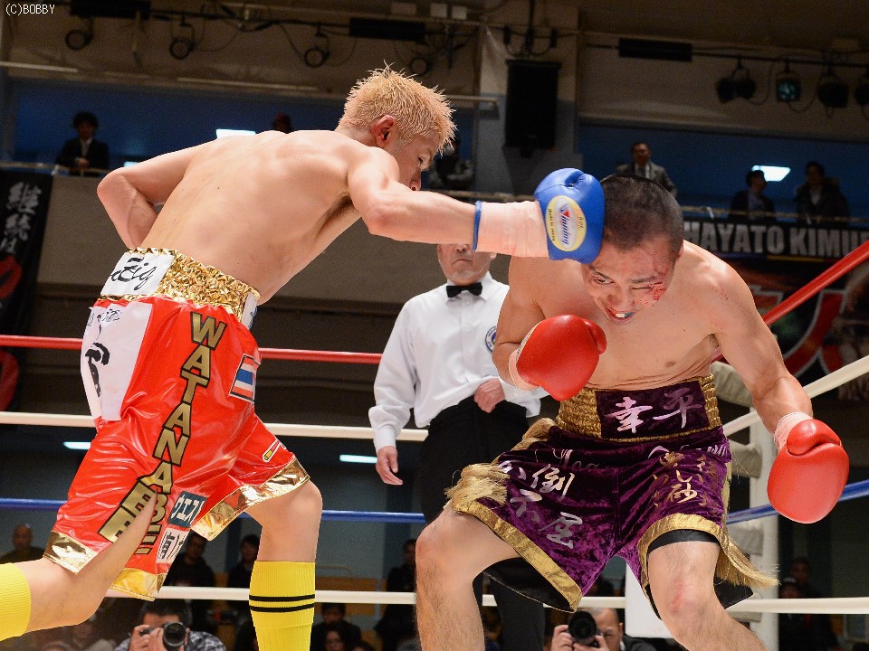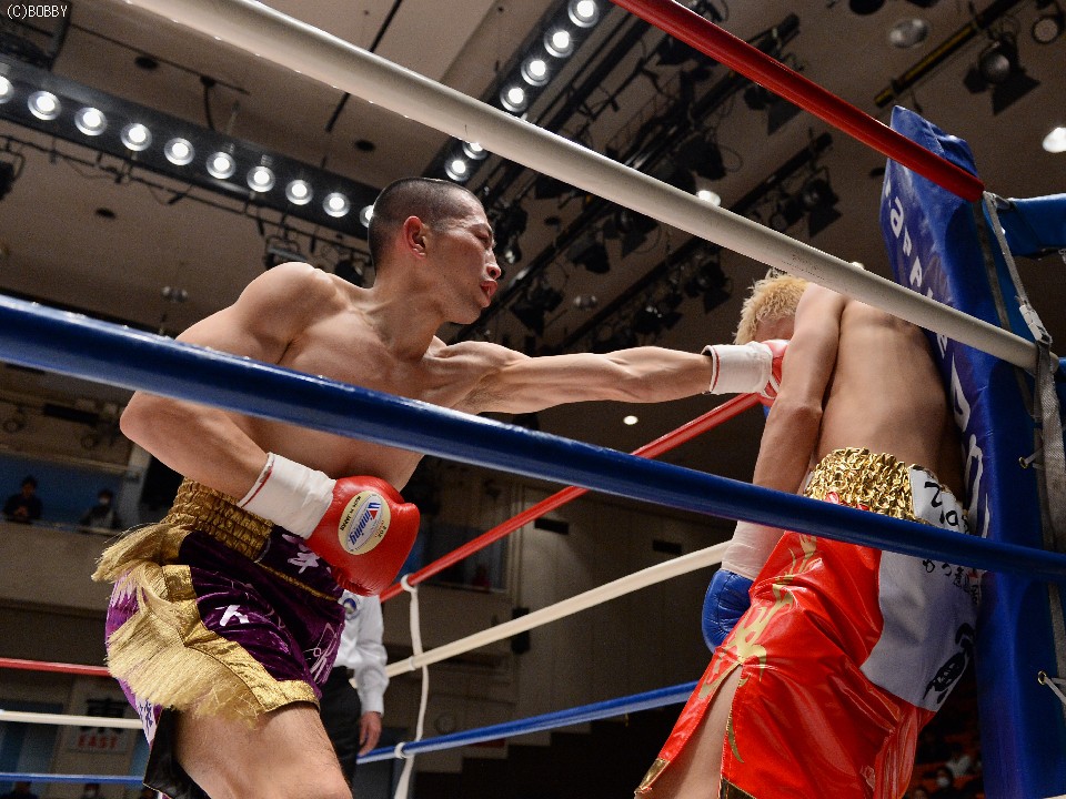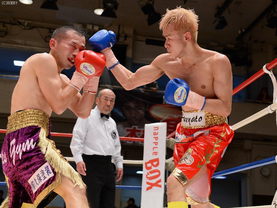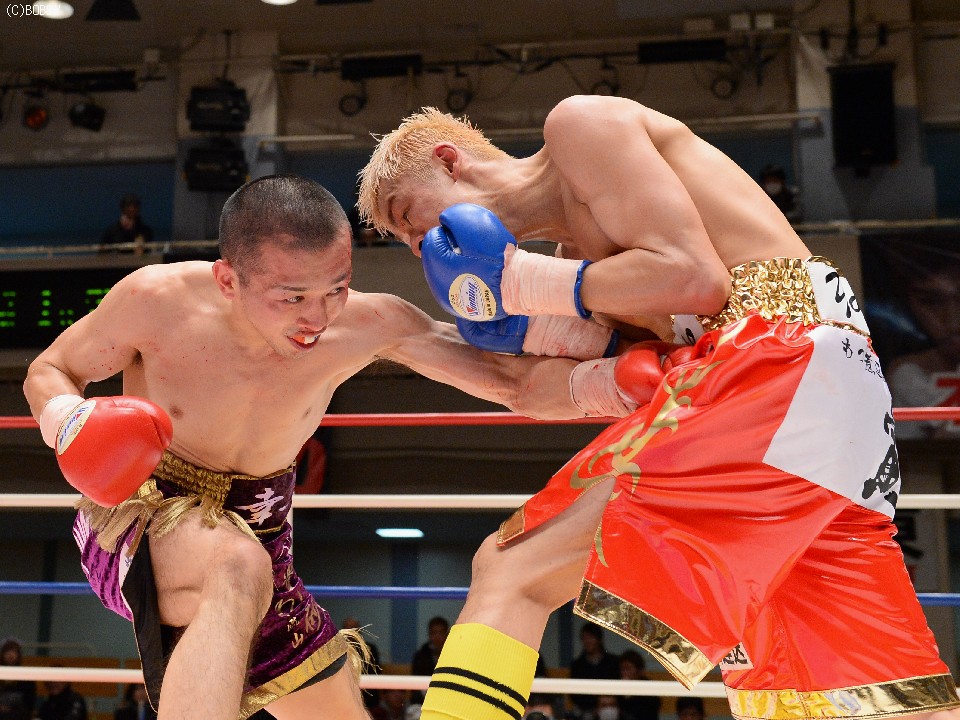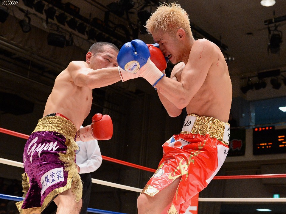 試合:慎重に距離を取り右を狙う木村に対し、ガードを固め低い体勢から圧力をかけ左ストレートを突き刺す。タイミングを掴んだ木村はジャブを散らし、ストレート、ボディでリズムを出すが、久保も詰めては、いきなりの左、ワンツーで手数をまとめ、五分の打ち合い持ち込む。中盤からも主導権が行き交う打ち合いが続き、会場もヒートアップ。最終R、激しい打ち合いのなか、久保の目尻がカットしドクターチェックが入るも、試合は続行。決定打はないものの、的確な有効打を奪った木村に軍配が上がった。
