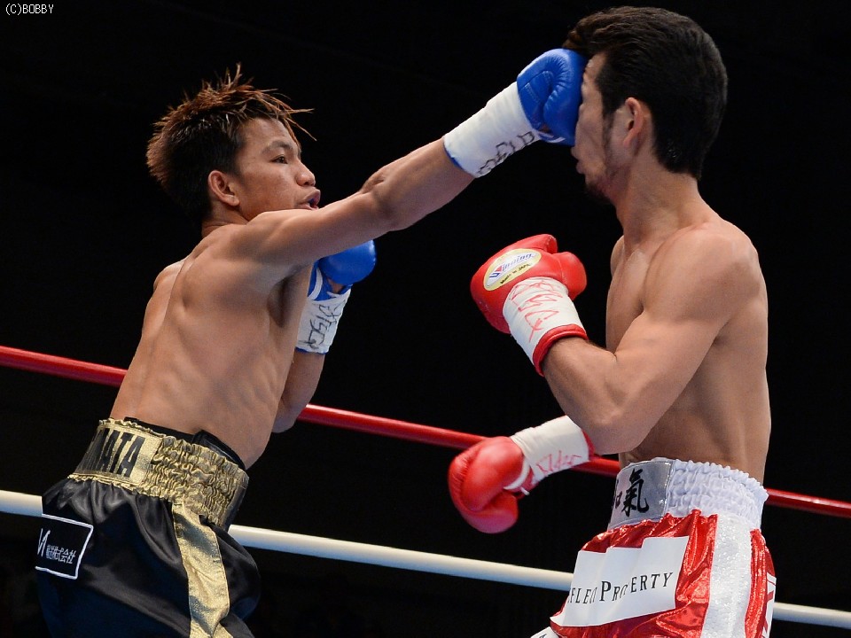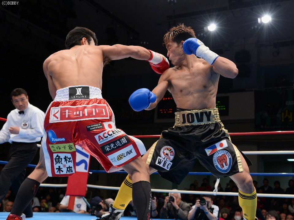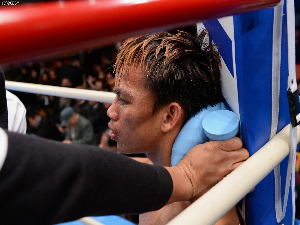 試合:サウスポーのチャンピオン和氣にジョビーが左に構えて挑んだ。硬さが見えた和氣はまっすぐ前に出てジャブから左ストレートを放つが空をきる。2R、左ストレートをテンプルに打ち込んだ和氣がダウンを奪った。立ち上がったジョビーに続けてパンチをまとめるとジョビーは立ち上がれず。