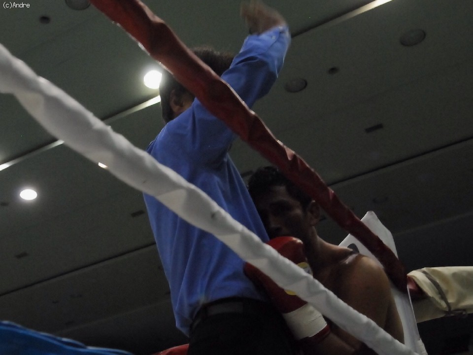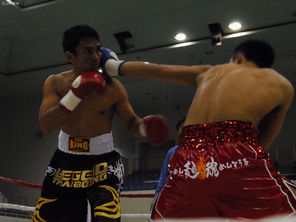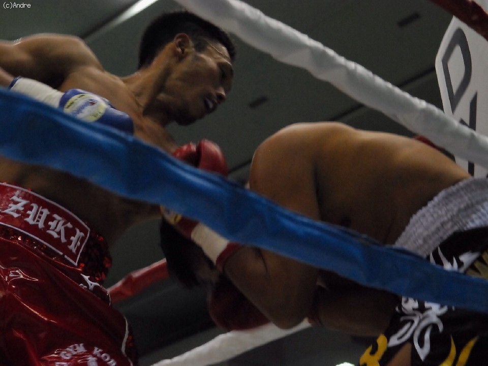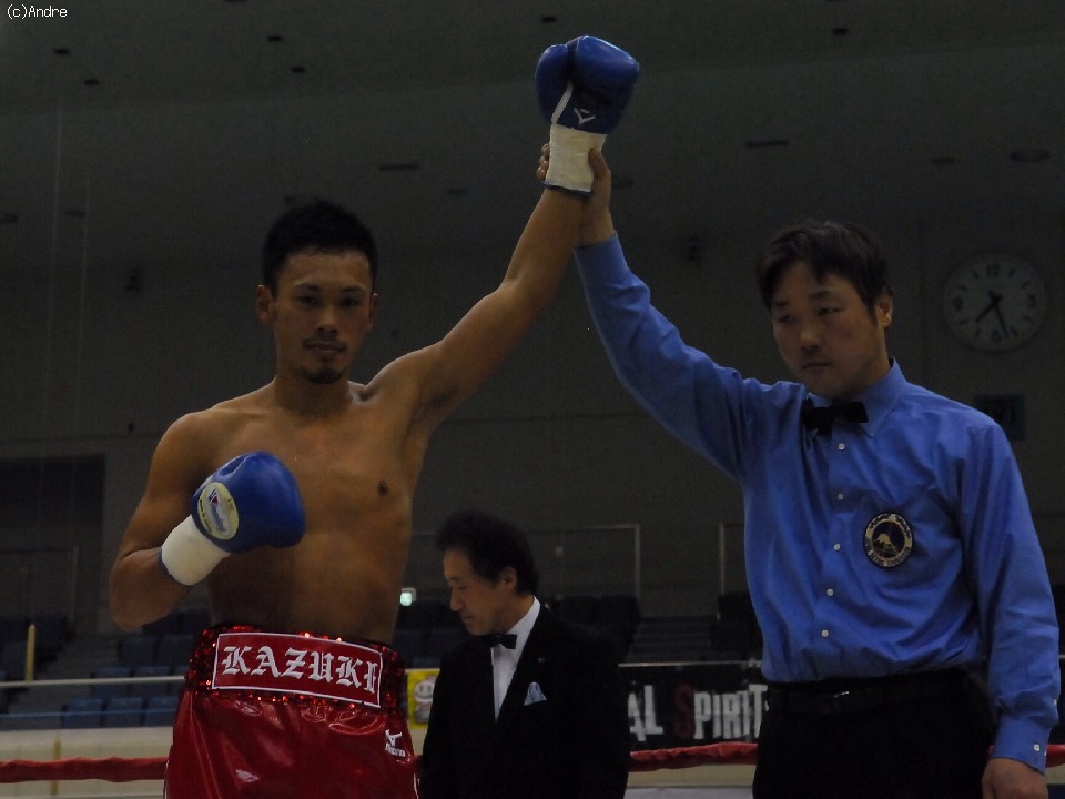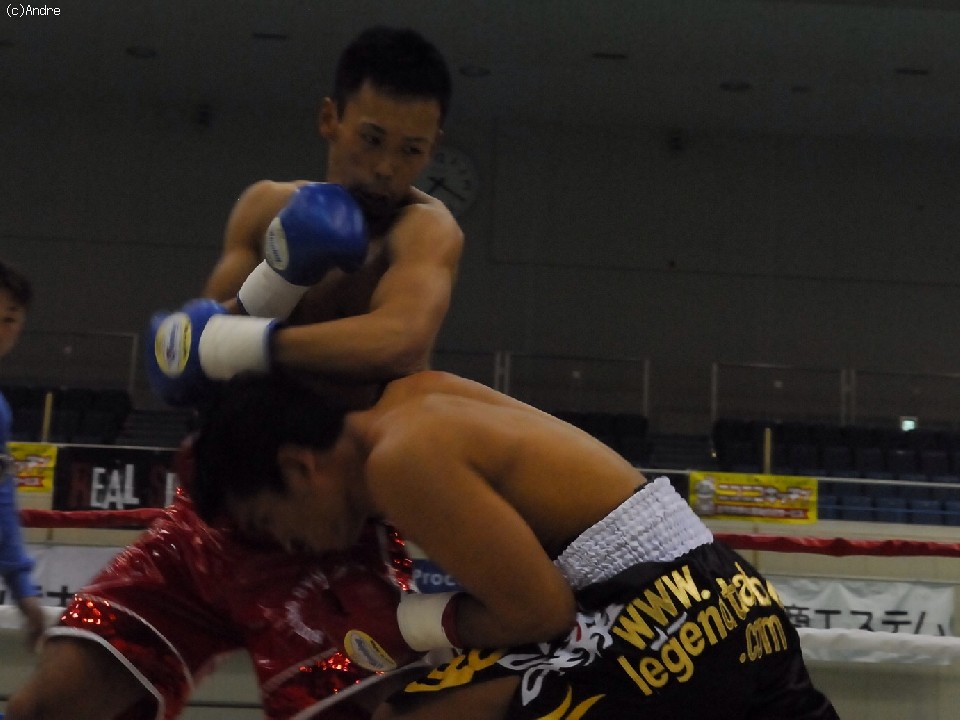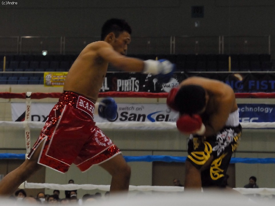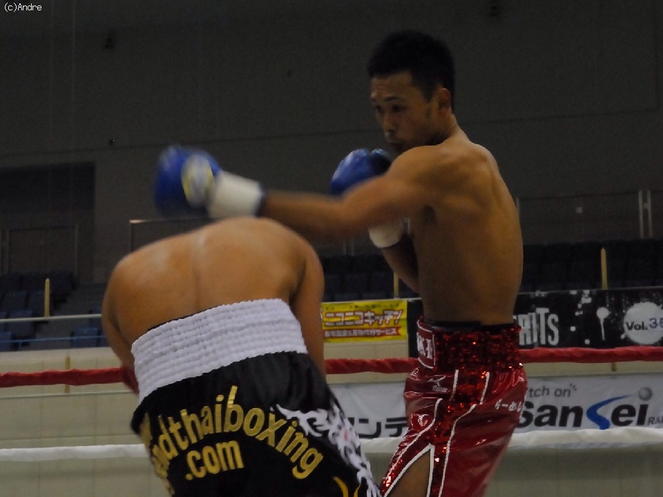 試合サウスポーのクーンキリは右ジャブを突くと前に出て左ストレートを狙う。対してスピードに勝る橋本は左ジャブを上下に打ち分ける。2R終盤、橋下がクーンキリをコーナーに追い詰めると連打を浴びせレフェリーストップを誘い込んだ。