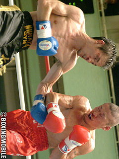 試合:古岩井は低い構えから頭を前に出し、左右フックで前に出るがパンチは大振りでヒットも単発。対する名取はジャブで距離を測り、古岩井に右を合わせる。3R、古岩井は度々のヘッドバッティングで減点1。中盤以降、古岩井もボディ連打など良い攻めを見せるが試合を通してガードが甘く、引いたところにワンツーを入れるなどパンチを貰い過ぎ。最終Rまで両者激しい打ち合いを見せるが、判定は名取に軍配。