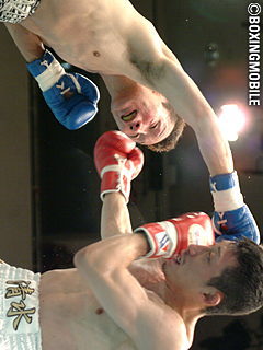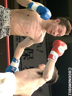試合:サウスポー清水は右ジャブから距離を詰めての左ストレート。コーナーに詰めて連打と良いリズムで先手を取る。対する藤沢は後手にまわってしまうが、清水の連打を凌ぎ左の打ち終わりに右を合わせる。度々のヒッティングとバッティングが両者に有り、5R、藤沢の負傷が酷く試合ストップ。負傷判定ドローに終った。