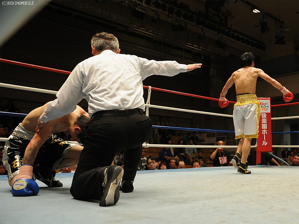 試合:初回、タイミングよくジャブを当てた渡邉だが、丸山が右ストレート、左ボディで猛攻。渡邉も背中を丸めて耐え続け、終盤はワンツー、アッパーを返し応戦。すると2Rはスタミナが落ちた丸山にジャブ、右ストレートで先手を取る。丸山の手数も3Rは復活。再び盛り返すと、続く4R、連打から最後はボディを決め、渡邉を沈めた。